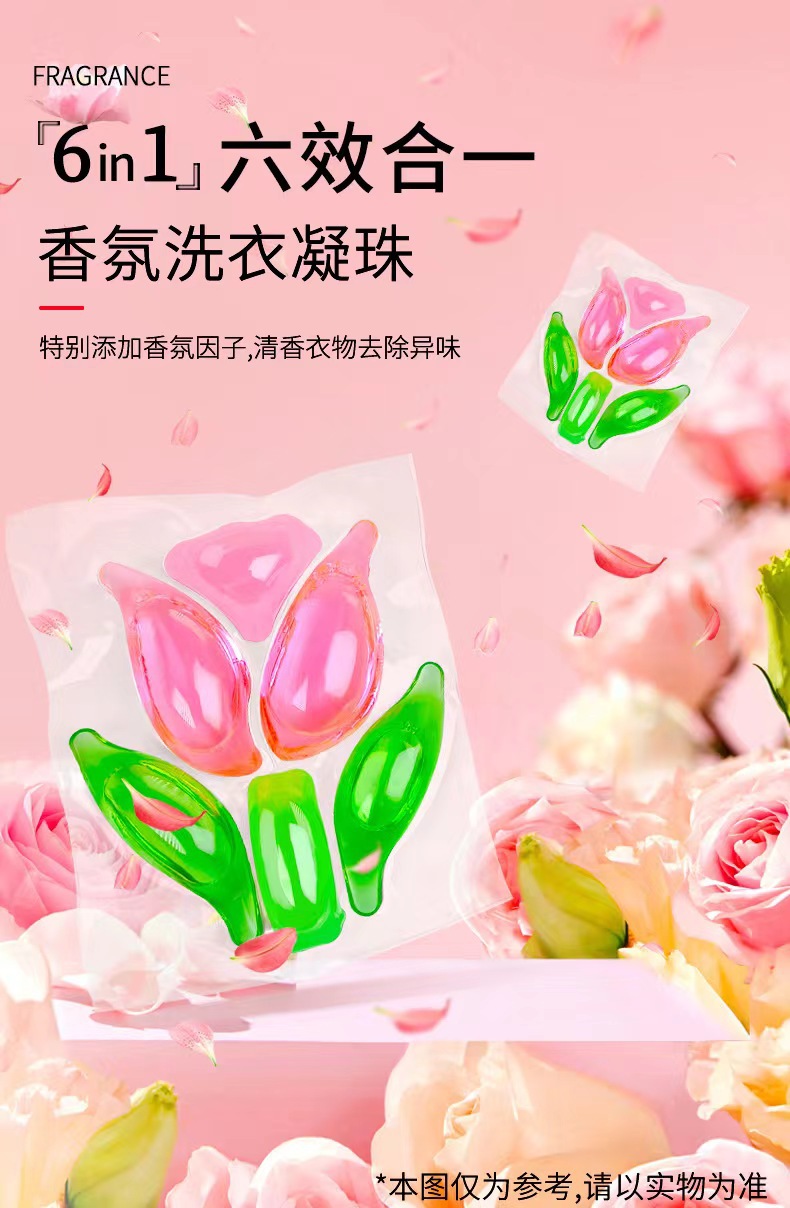 6 챔버 세탁 젤 구슬 튤립 꽃 향기 강한 오염 제거 농축 향수 6 대 1 세탁 공 공장 도매스토어 가기