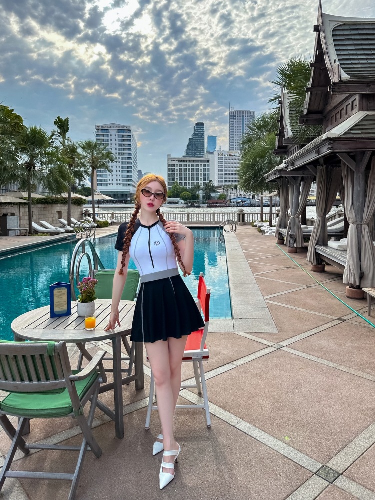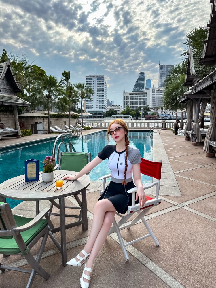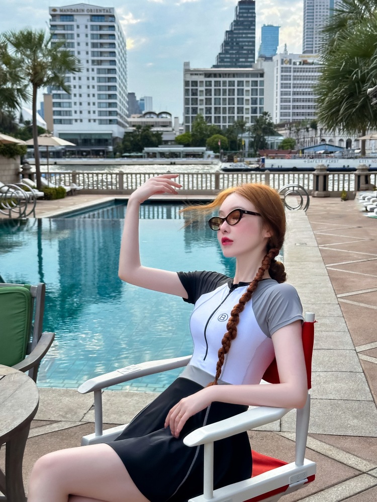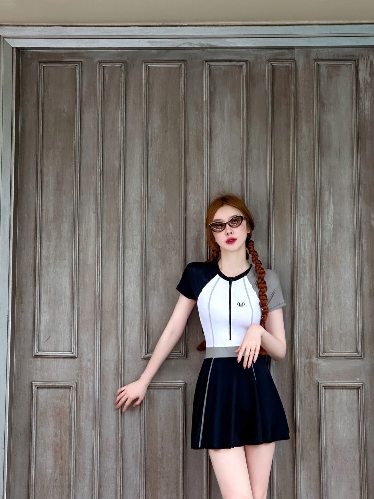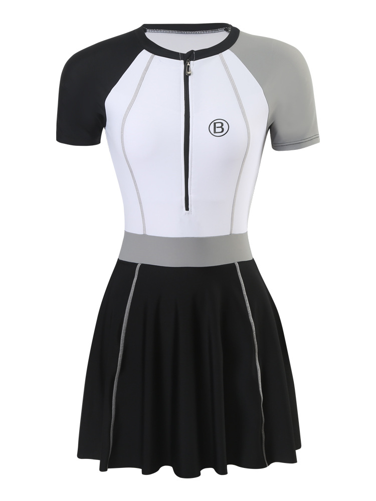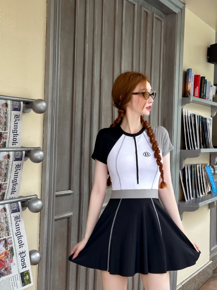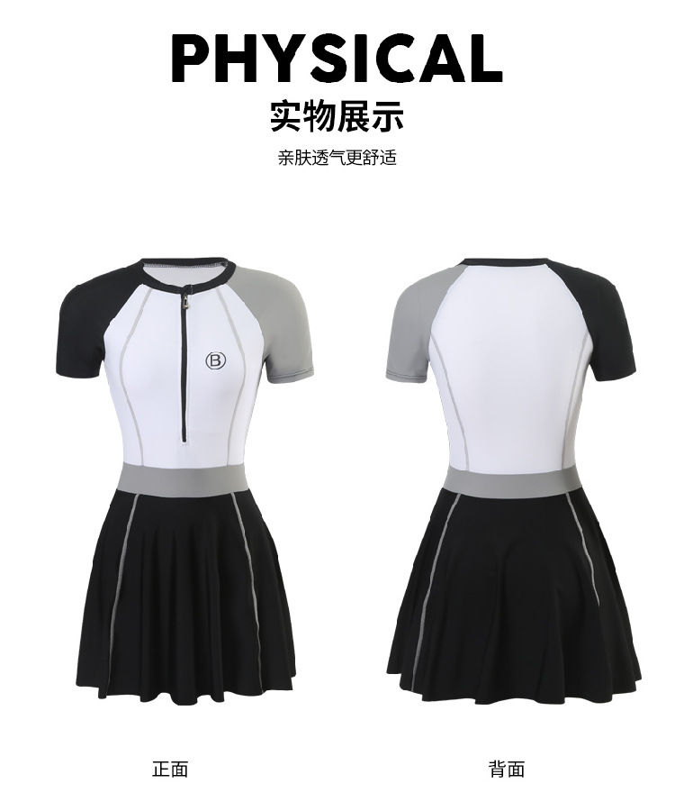 수영복 여성의 보수적 인 반팔 원피스 원피스 수영복 새로운 스포츠 배꼽 커버 슬리밍 플러스 사이즈 온천 수영복스토어 가기