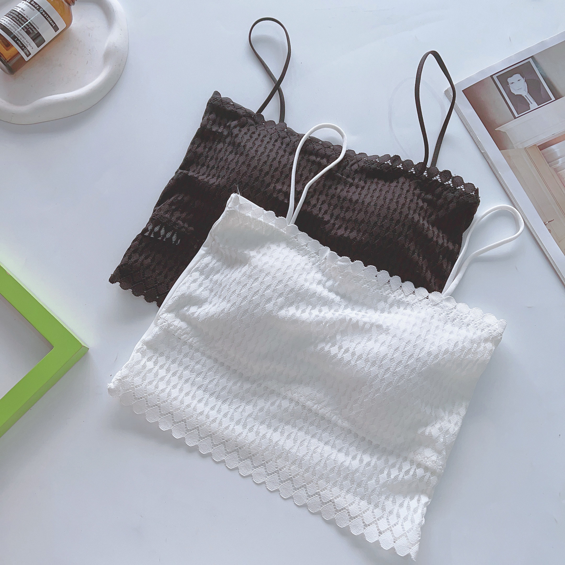 소녀의 레이스 캐미솔 내이 고정 컵 가슴 패드 노출 방지 튜브 탑베이스 뷰티 백 포장 가슴 얇은스토어 가기