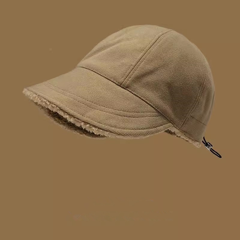 Zhao Lusi 같은 스타일의 모자 여성의 가을과 겨울 얼굴 모양의 양모 어부 모자 기모 차가운 따뜻한 피크 모자 겨울스토어 가기