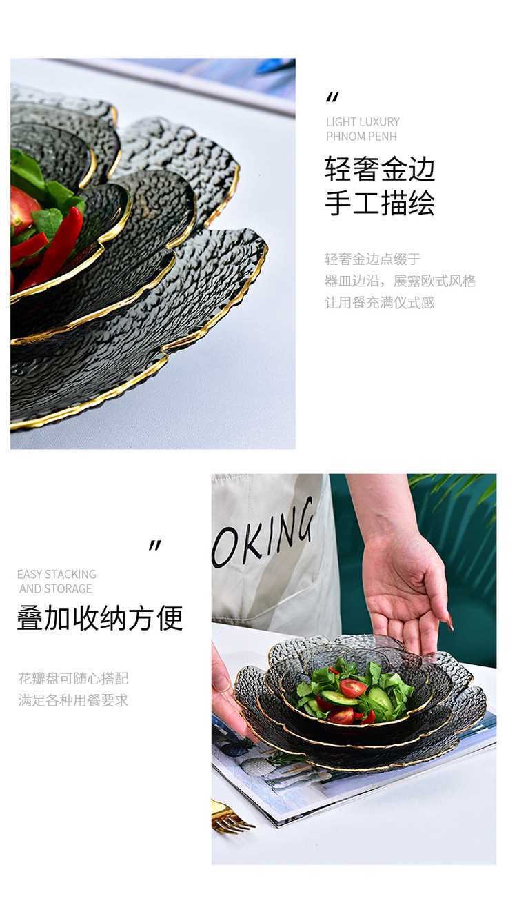 4 잎 잔디 꽃잎 판 일본식 망치 패턴 프놈펜 유리 그릇 가정용 식기 창 창조적 인 샐러드 그릇 과일 접시 세트