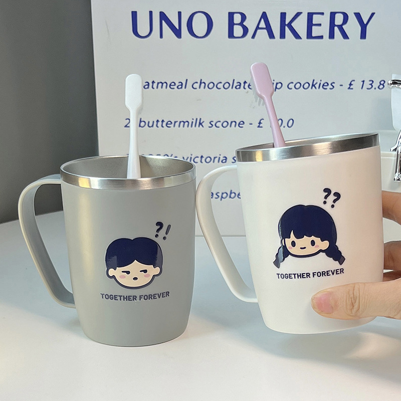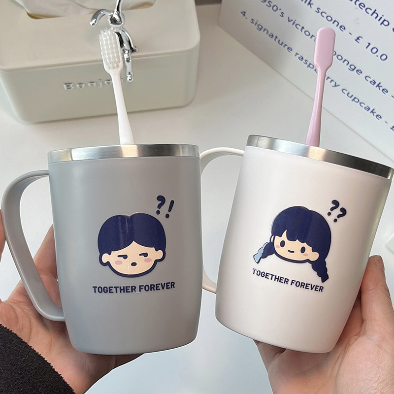 높은 찾고 원래 개인화 된 만화 깜짝 소년과 소녀 휴대용 스테인레스 스틸 구강 세척 컵 학생 커플 칫솔스토어 가기