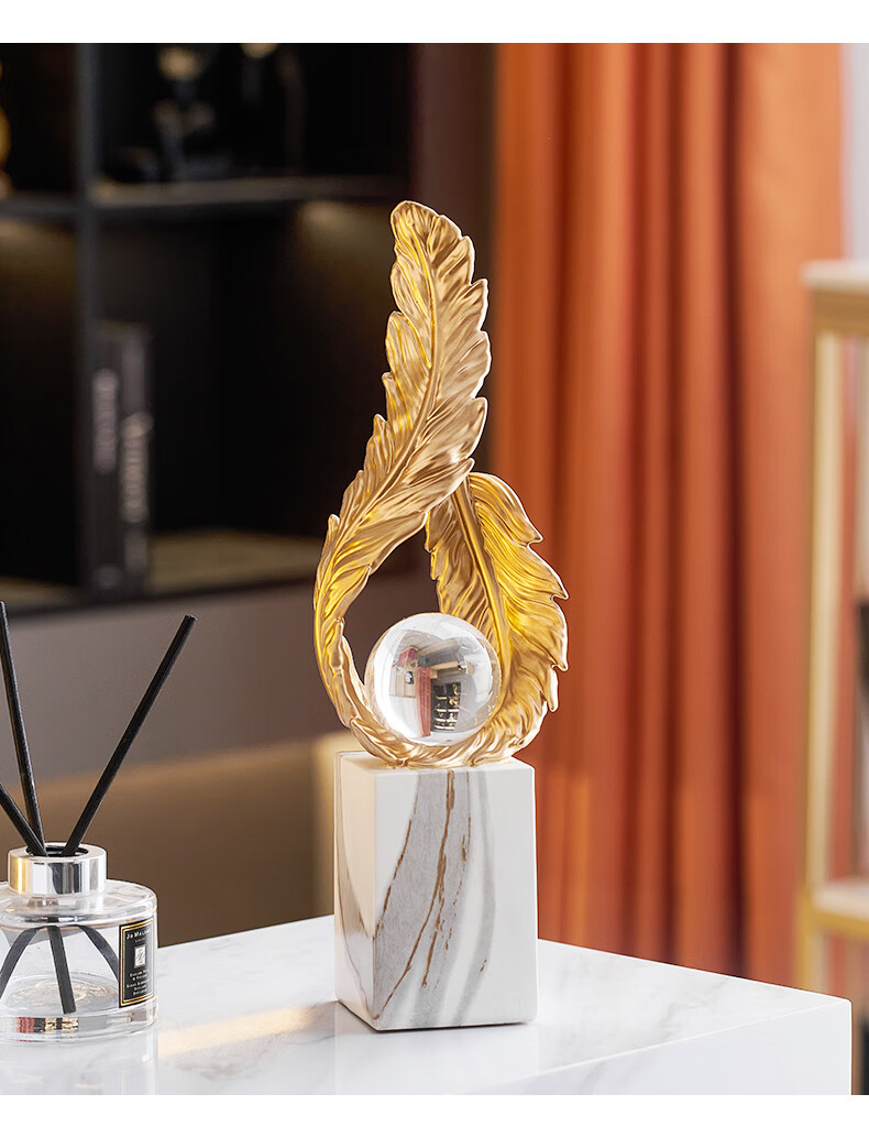 골드 도금 깃털 장식품 하이 엔드 라이트 럭셔리 거실 입구 사무실 와인 캐비닛 장식 새해 장식 오프닝 선물스토어 가기