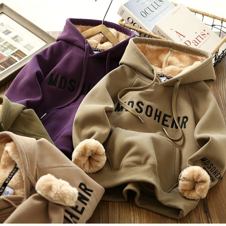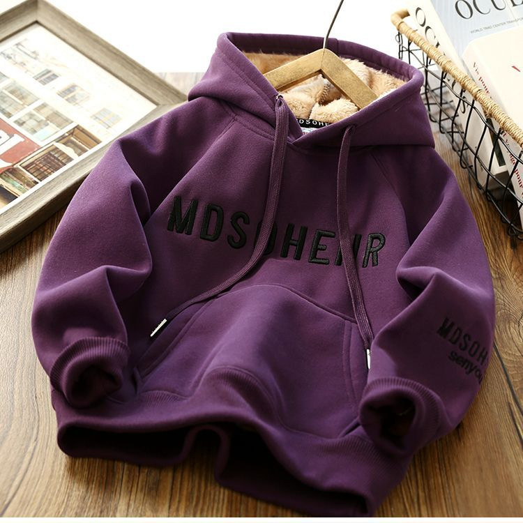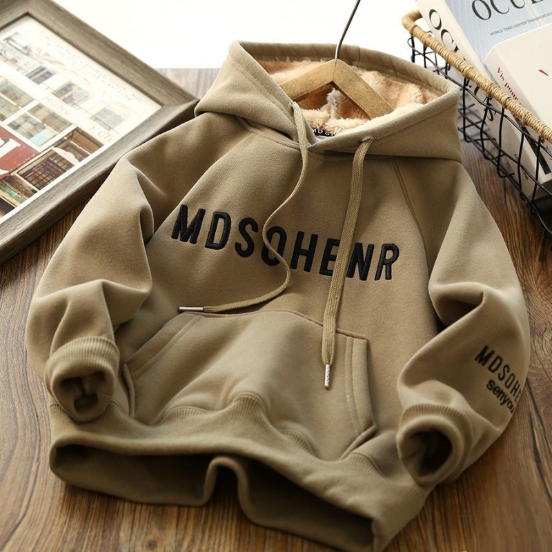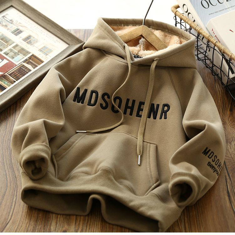 어린이 의류 소년 잘 생긴 겨울 2023 새로운 중형 및 대형 어린이 캐주얼 후드 기모 세련된 튀김 거리 한국식 스웨터 패션스토어 가기