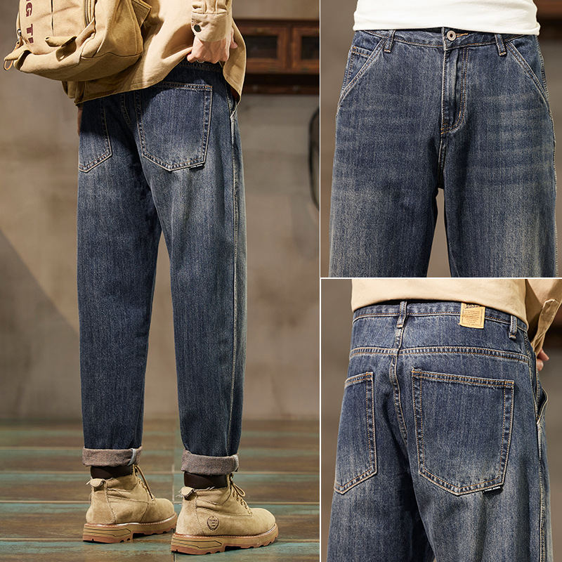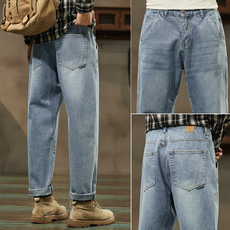 청바지 남성 스트레이트 루즈 2024 여름 봄과 가을 패션 브랜드 미국 스타일 레트로 캐주얼 남성 트렌디 한 긴 바지스토어 가기