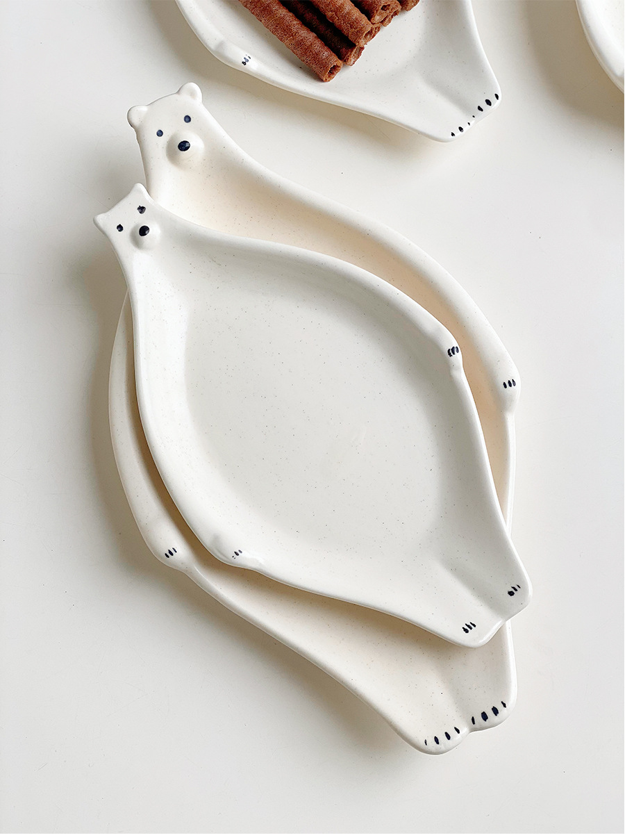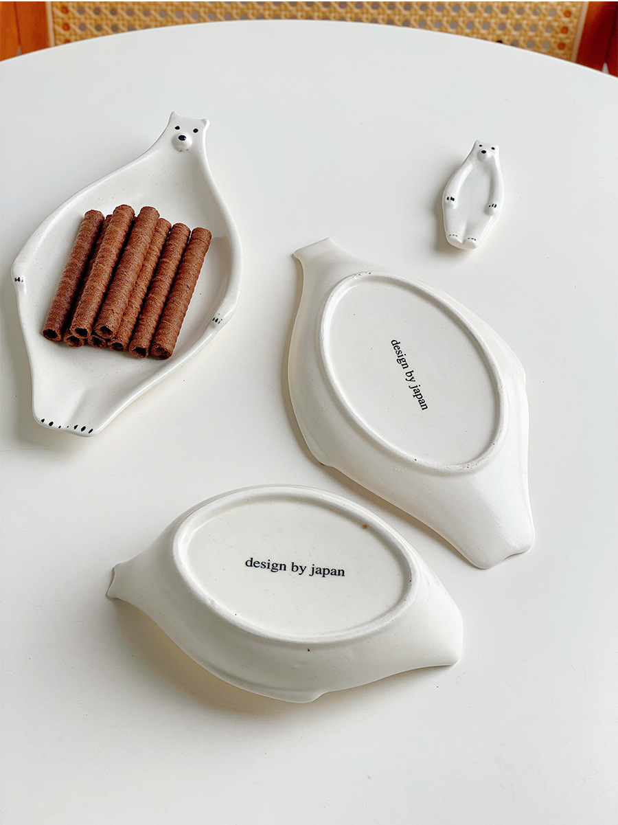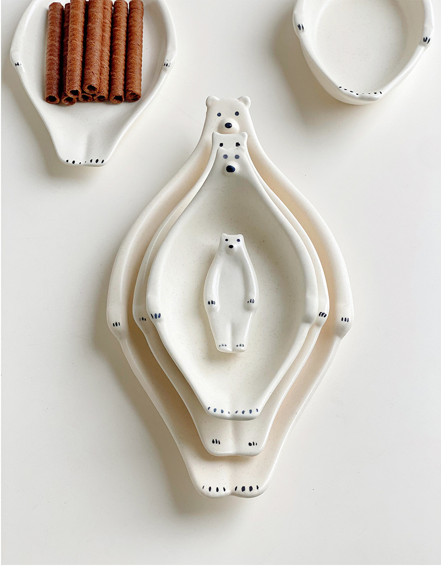 일본 귀여운 북극곰 세라믹 파스타 접시 디저트 그릇 스낵 플레이트 가정용 케이크 그릇 젓가락 클립 작은 접시