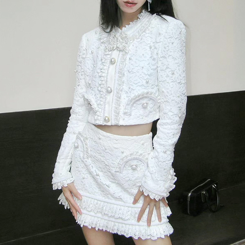 명媛 레이스 자수 고급 비즈 장식 숏 재킷 여성용 2025 가을 겨울 스타일 부잣집 딸 패션 세트 여성용 1654스토어 가기