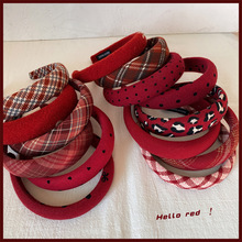 高级感红色格子发箍女新款发卡高颅顶洗脸压发头箍气质百搭女头饰