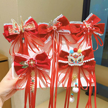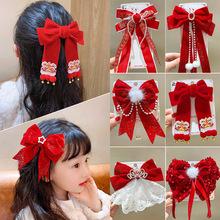 喜庆红色新年女童抓夹公主头发饰蝴蝶结飘带发夹女孩对夹中秋头饰