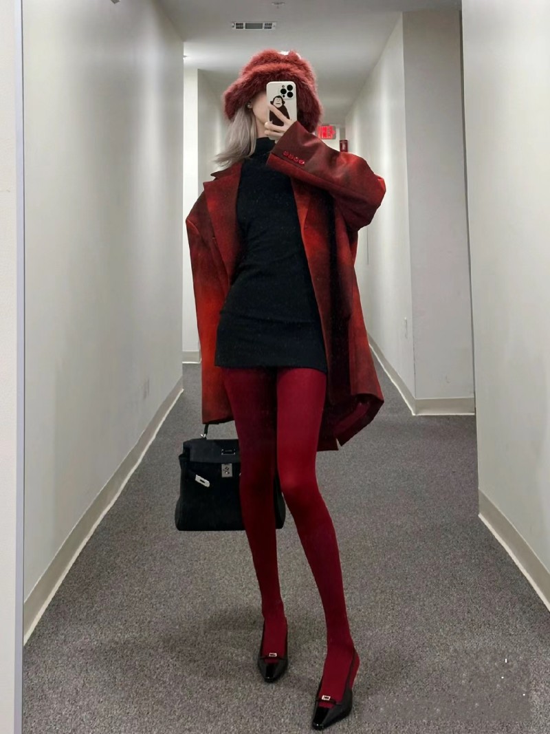 붉은 새해 출생 연도면 레깅스 올 매치 일본 단색 레깅스 슬림 기본 레깅스스토어 가기