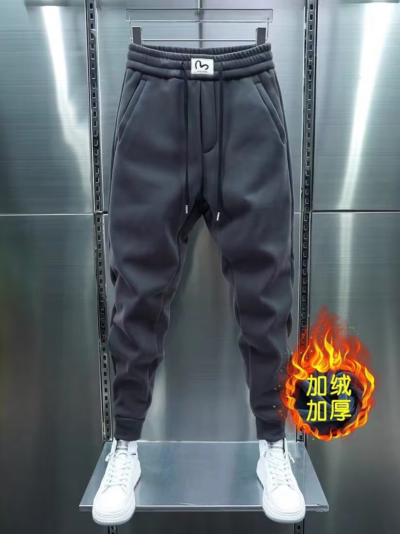 캐주얼 바지 겨울 남성용 트렌디 한 스포츠 바지 기모 트렌디 한 브랜드 발목 길이 발목 묶인 스웨트 팬츠 남성용 스트레치 팬츠스토어 가기