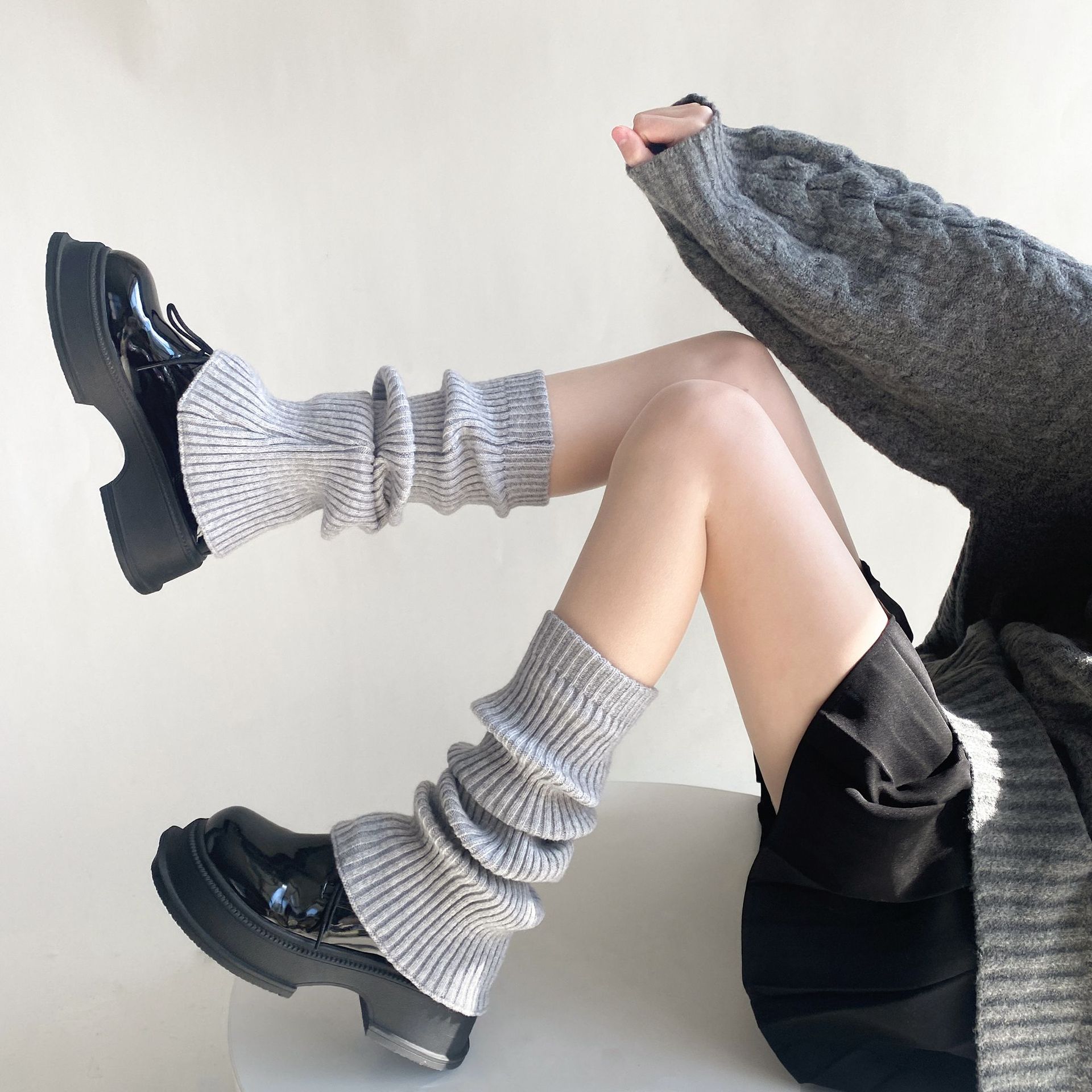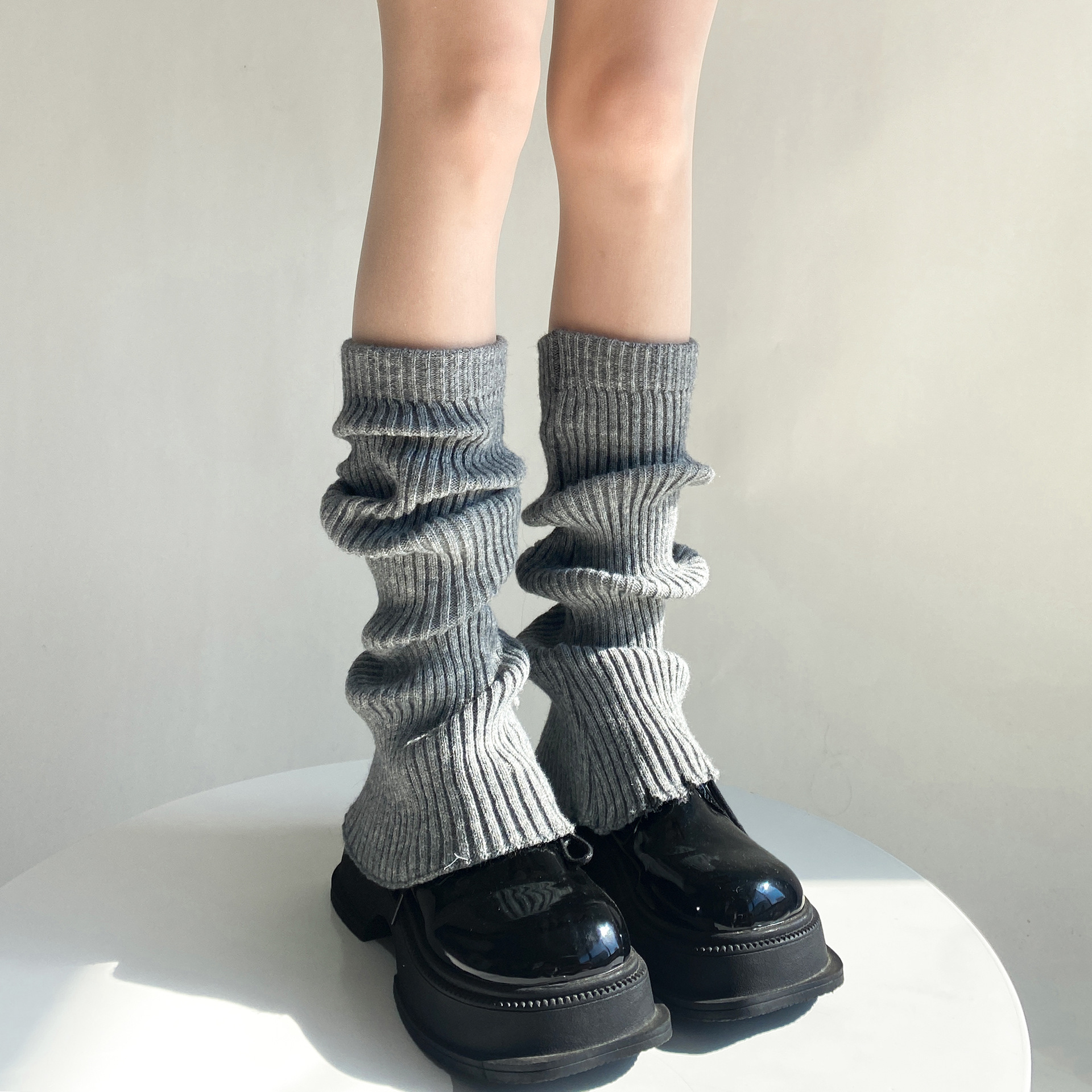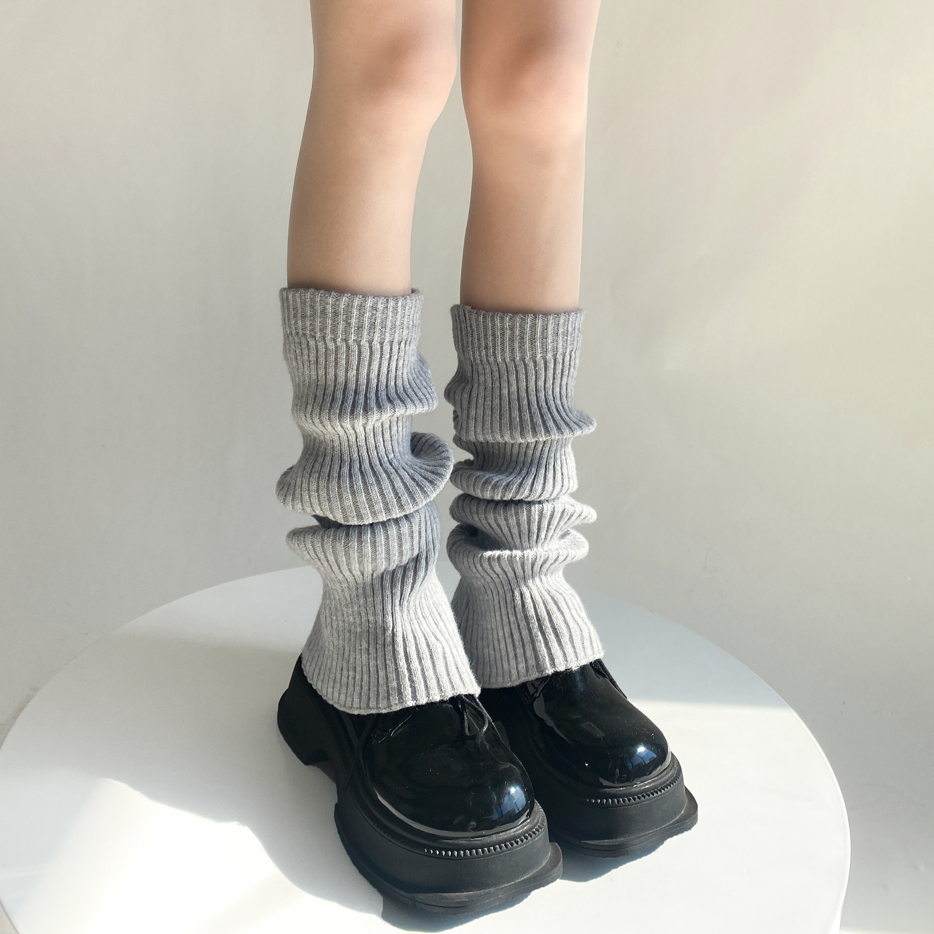 가을과 겨울 플레어 단색 더미 양말 여성의 따뜻한 간단한 올 매치 종아리 양말 봄과 가을 슬리밍 니트 부츠 커버