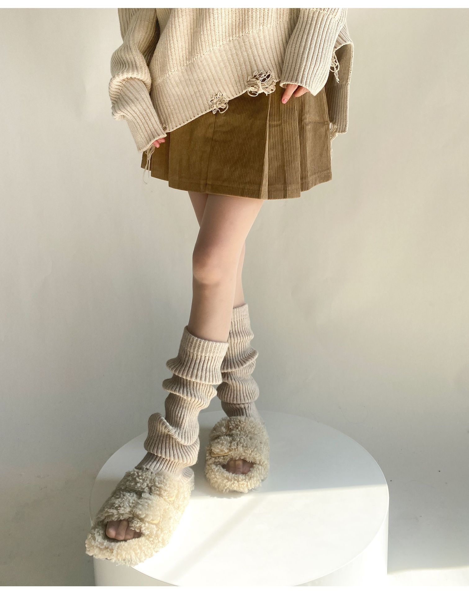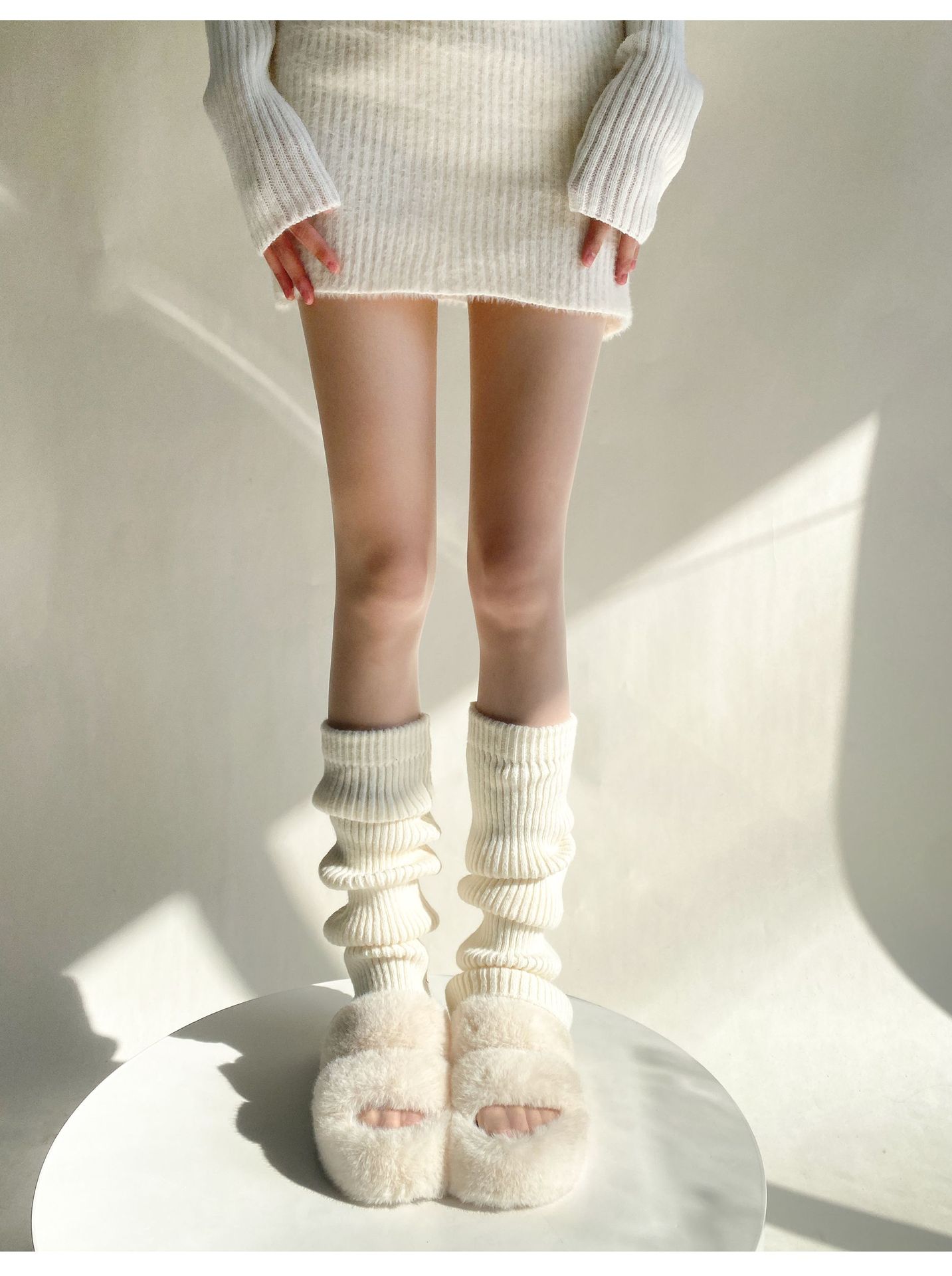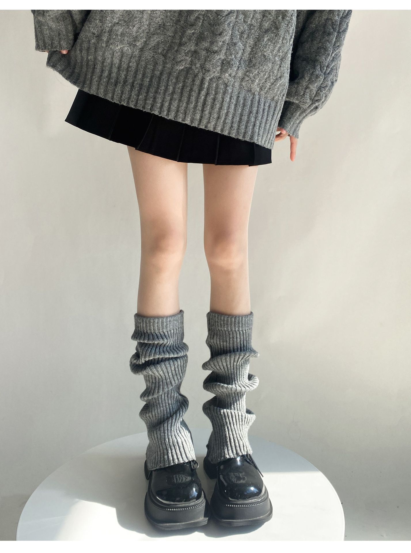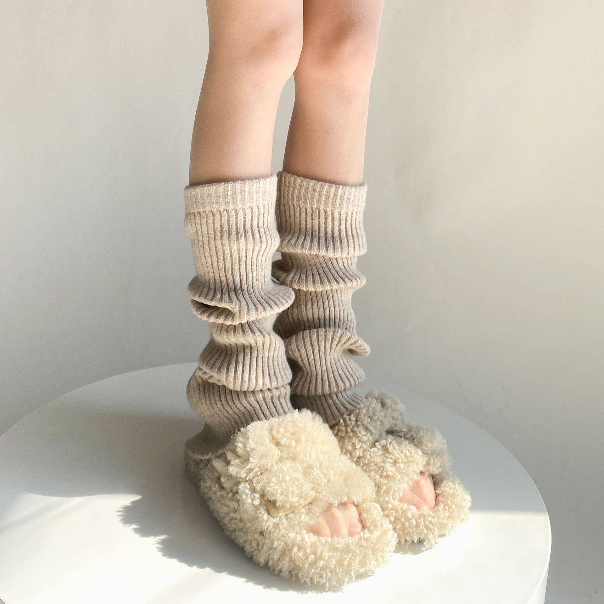 가을과 겨울 플레어 단색 더미 양말 여성의 따뜻한 간단한 올 매치 종아리 양말 봄과 가을 슬리밍 니트 부츠 커버