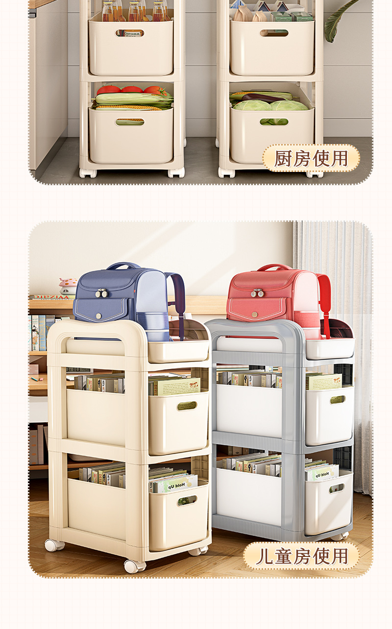 학교 가방 보관함 이동식 트롤리 가정용 다층 플라스틱 스낵 보관함 바닥 보관함 책장스토어 가기