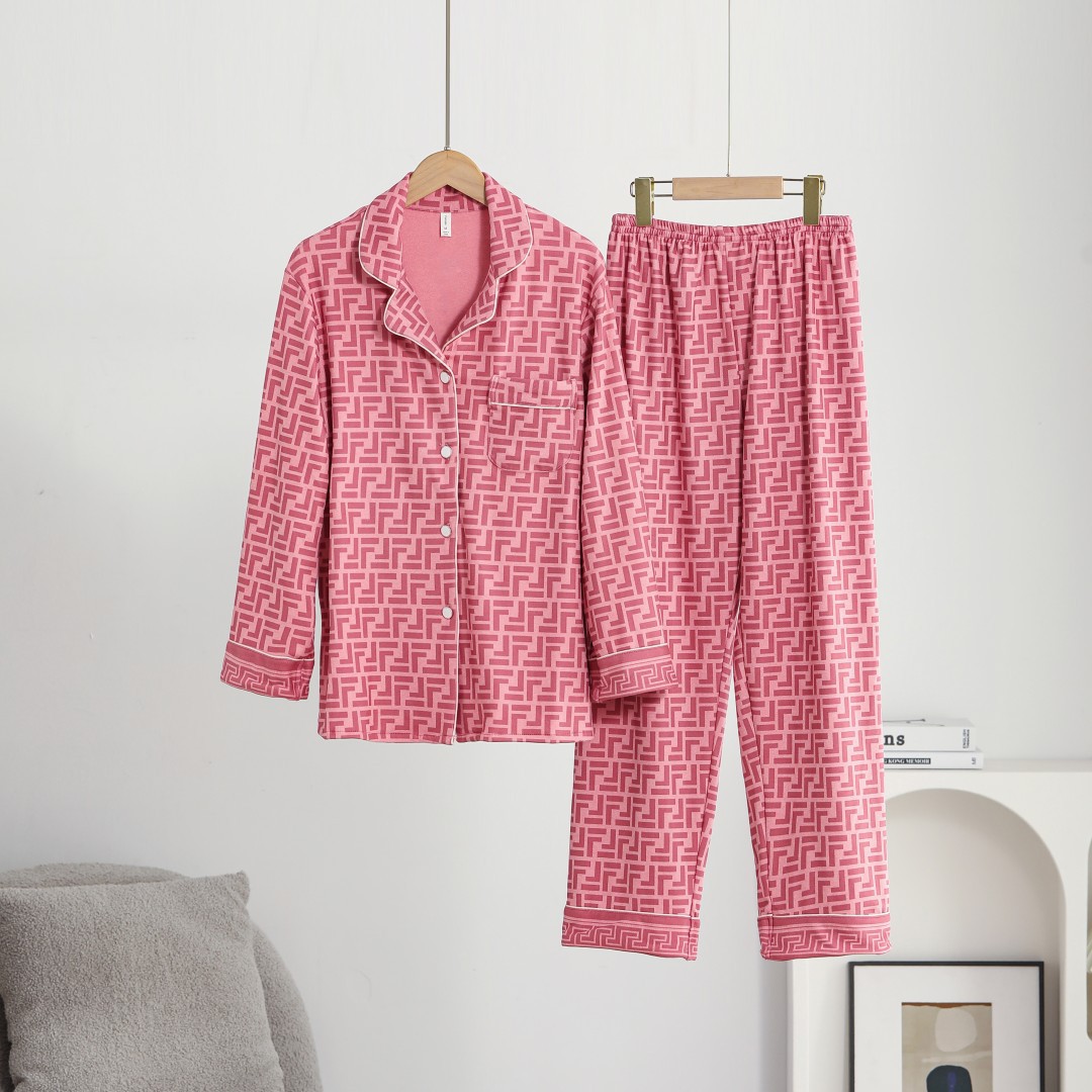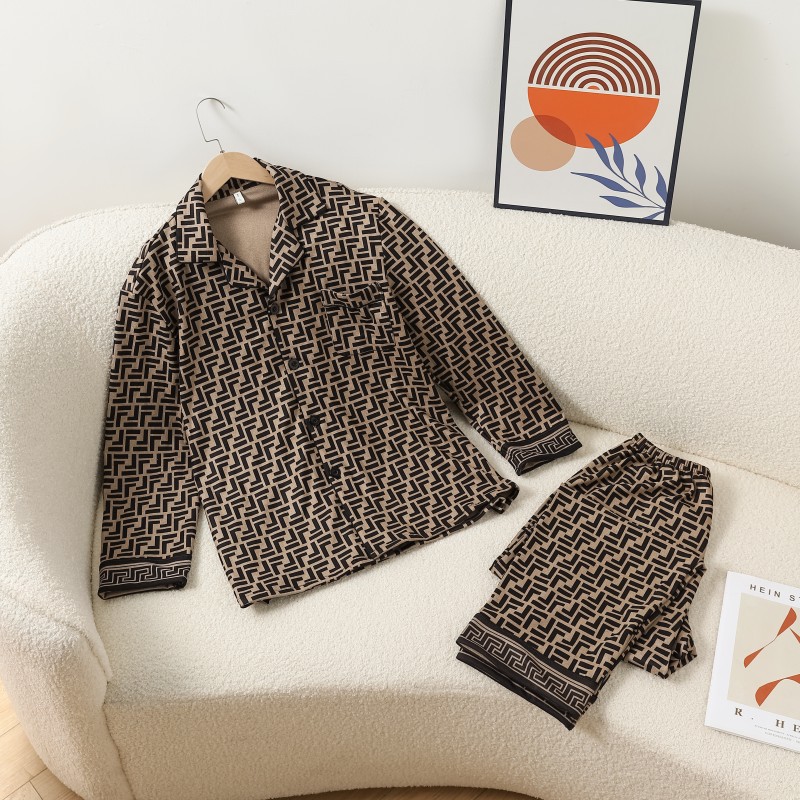 가을과 겨울 새로운 커플 벨벳 파자마 부드러운 유럽과 미국의 큰 브랜드 스타일 홈 의류 세트 남성 외관 외관