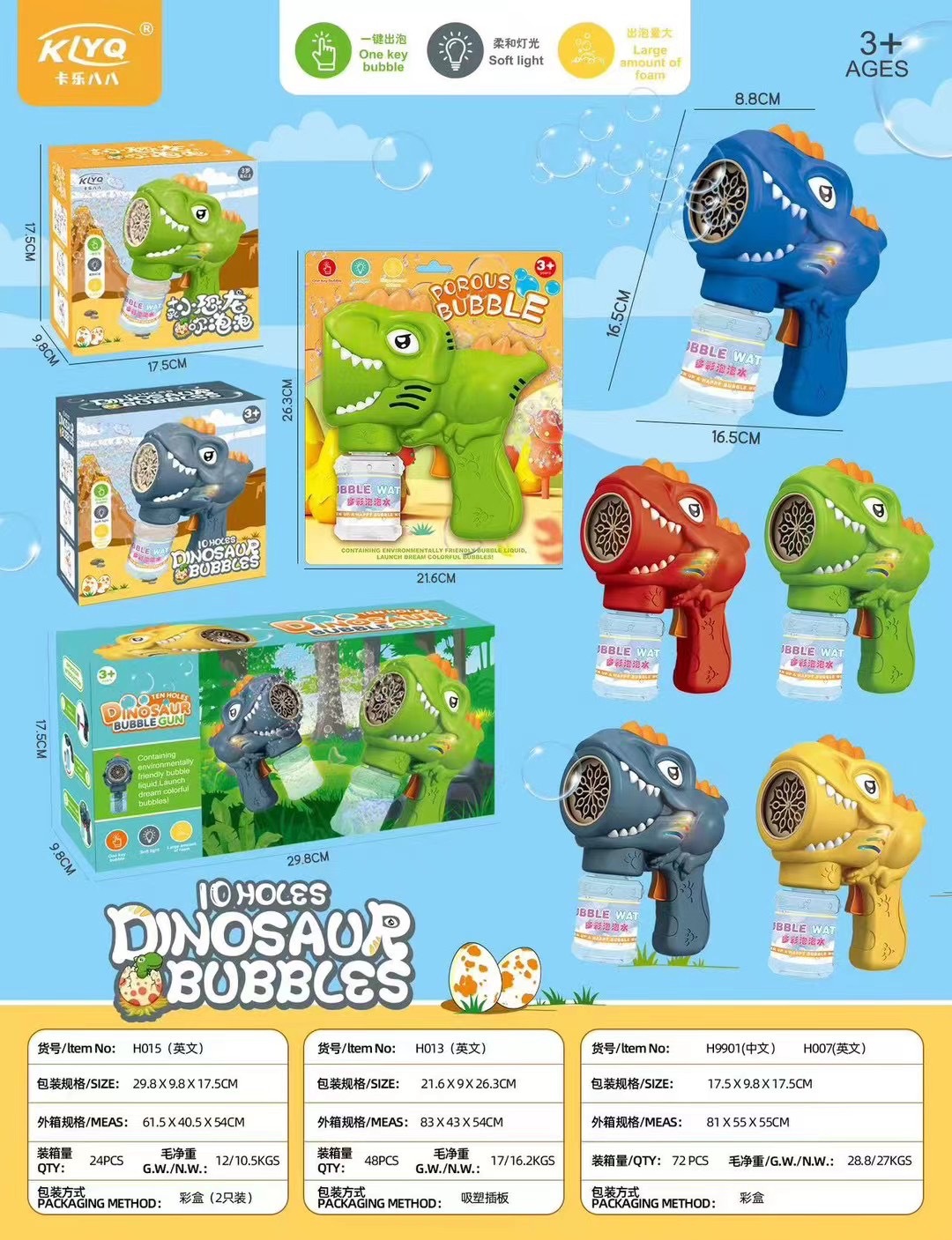 • 6 홀 공룡 [블루] 컬러 박스-거품 물 한 병