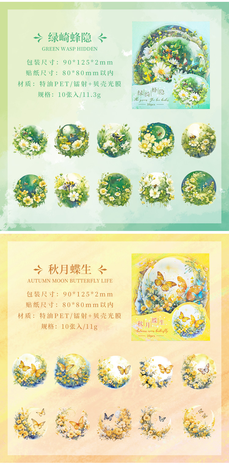 향기로운 떠 다니는 꽃 달 특별한 기름 애완 동물 소재 테이프 diy 배경 국립 스타일 소재 도금 실버 스탬핑 PET goo 카드 스티커스토어 가기