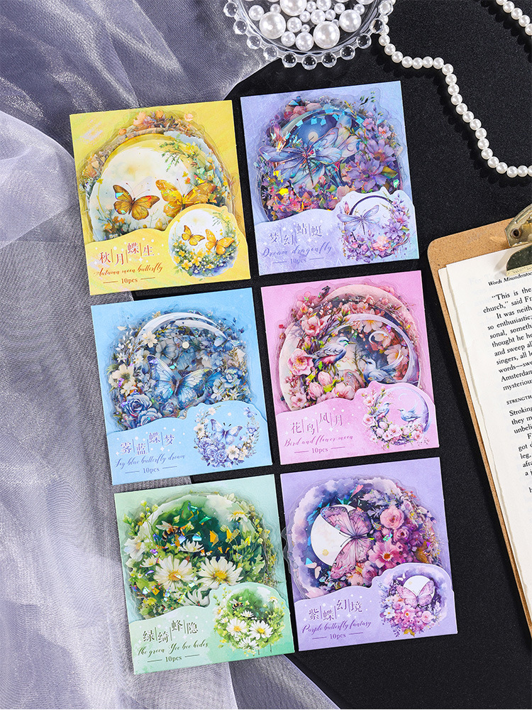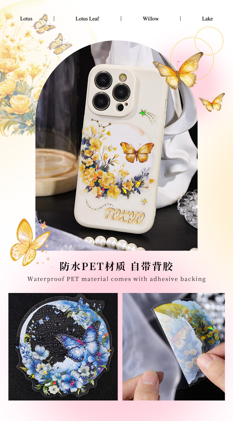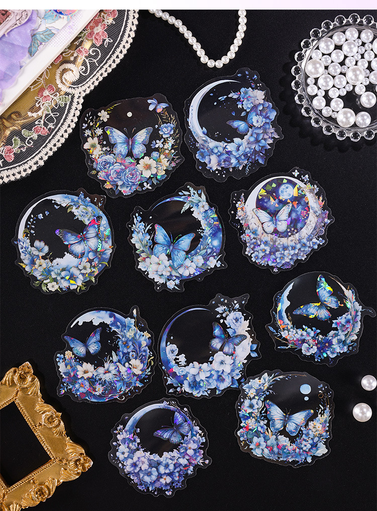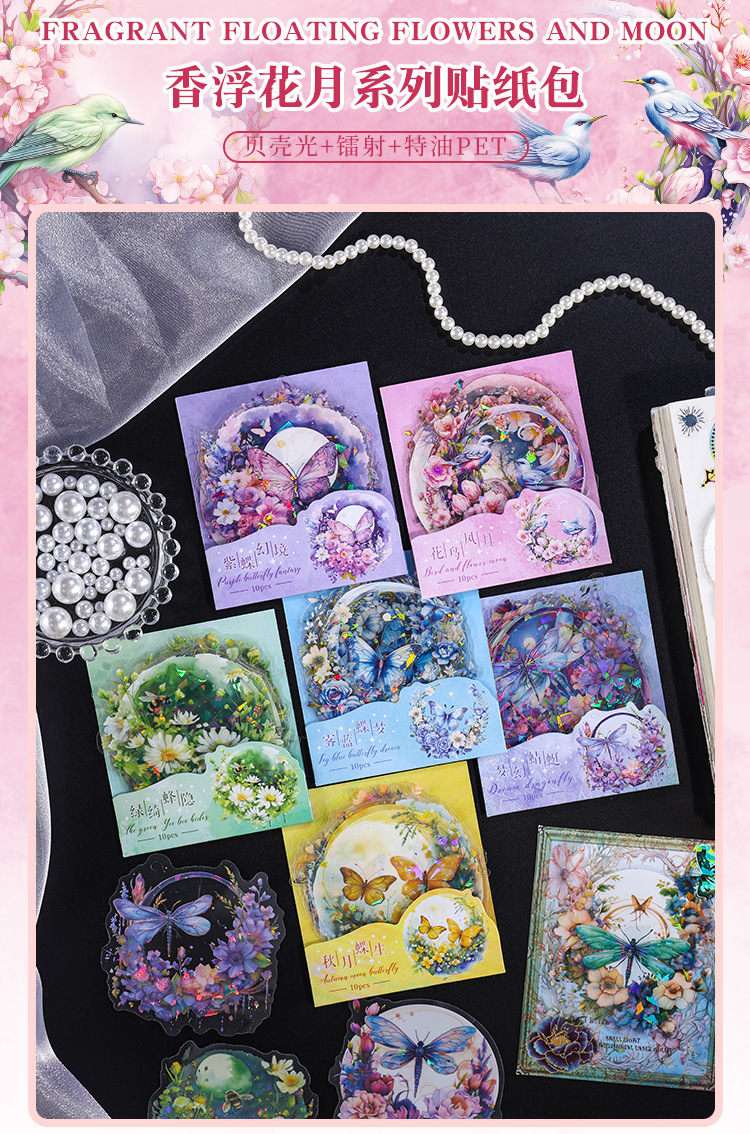 향기로운 떠 다니는 꽃 달 특별한 기름 애완 동물 소재 테이프 diy 배경 국립 스타일 소재 도금 실버 스탬핑 PET goo 카드 스티커