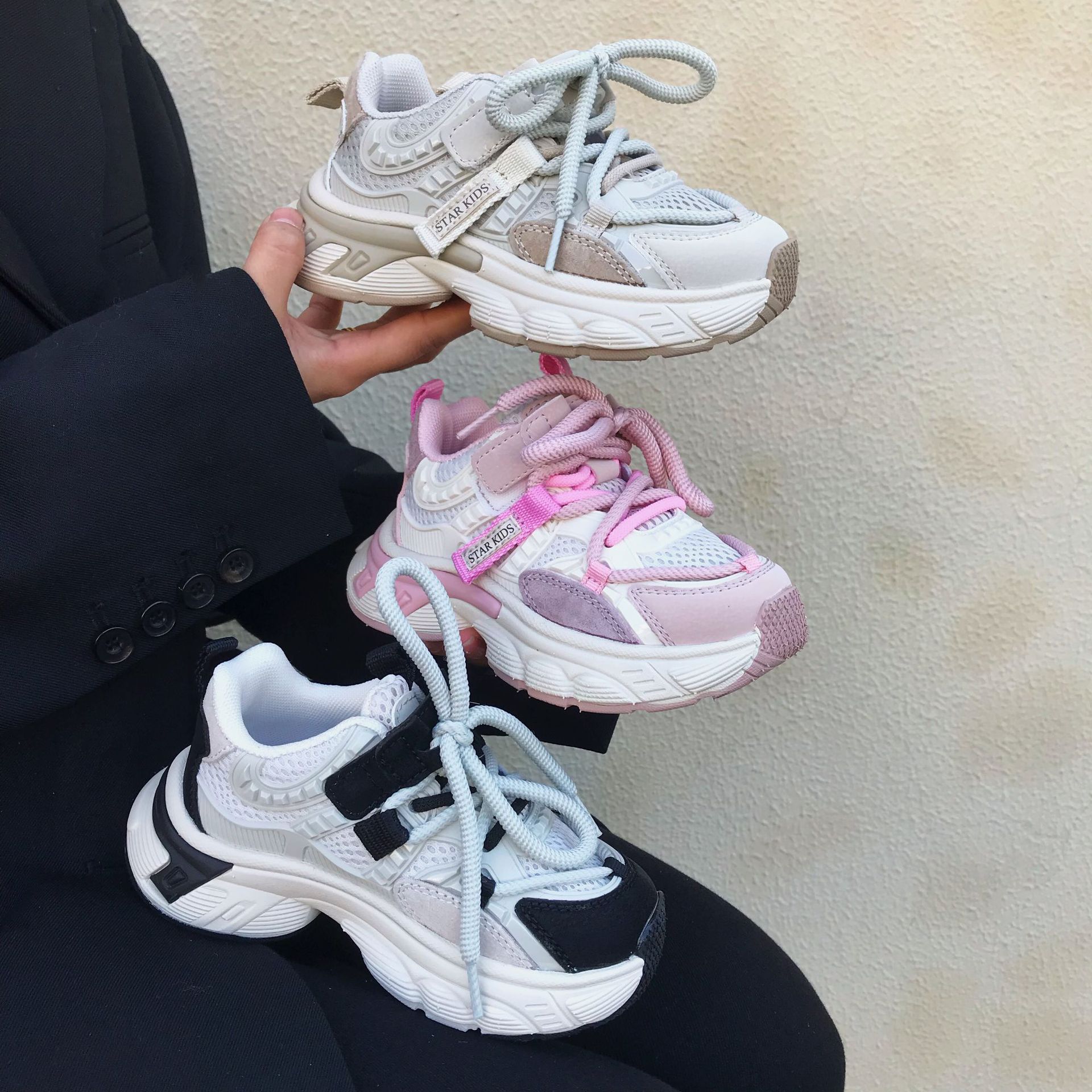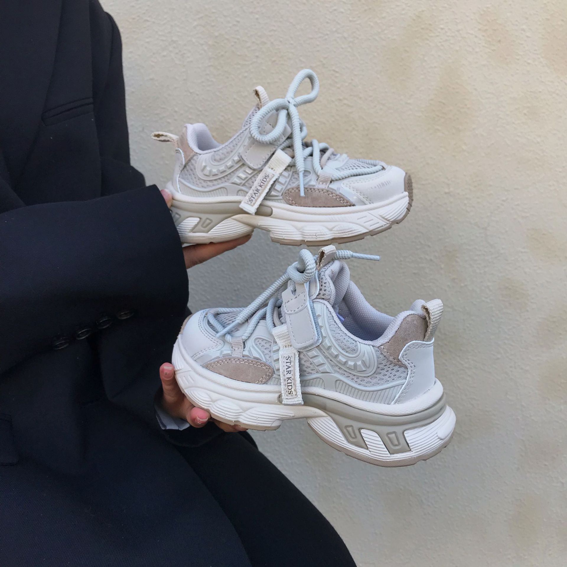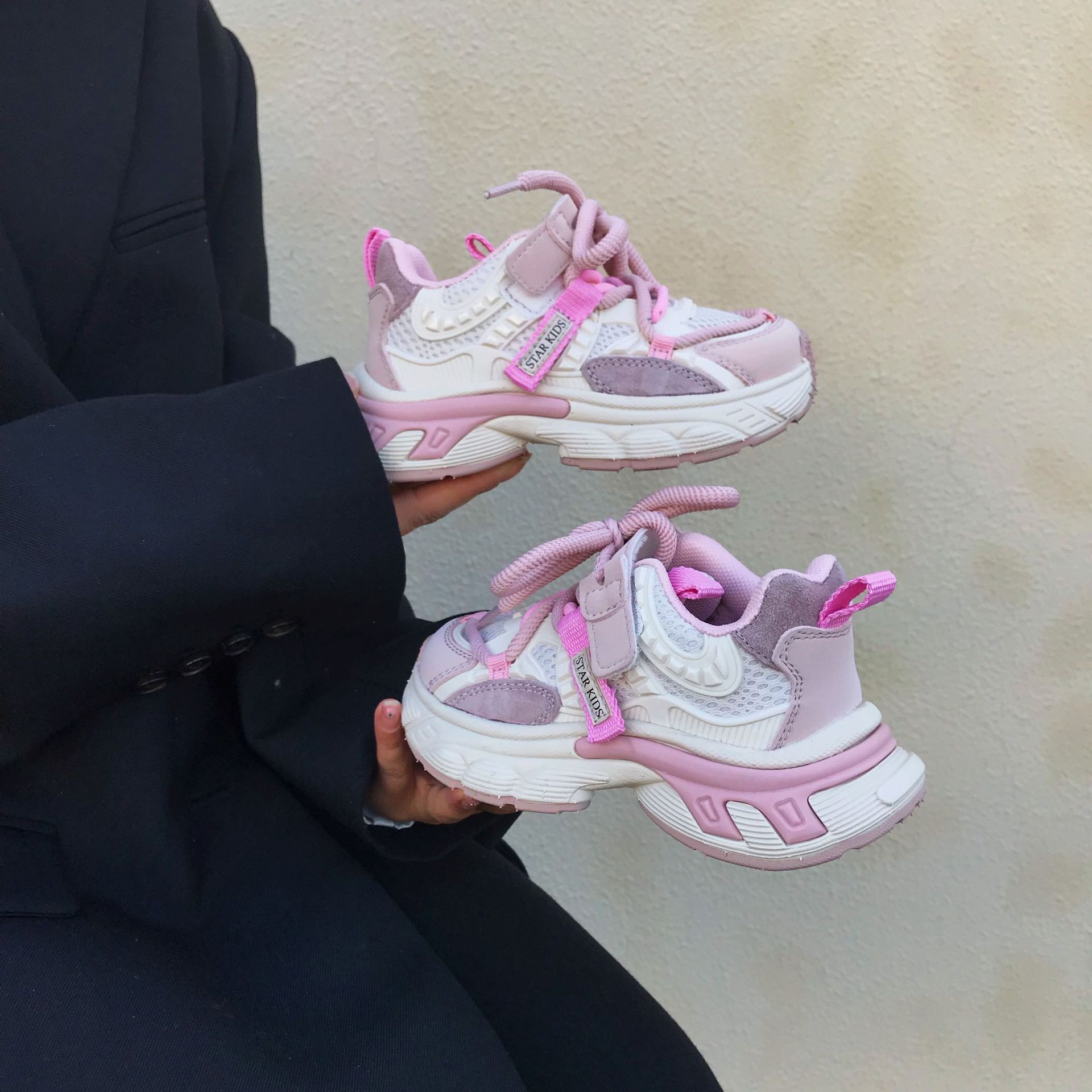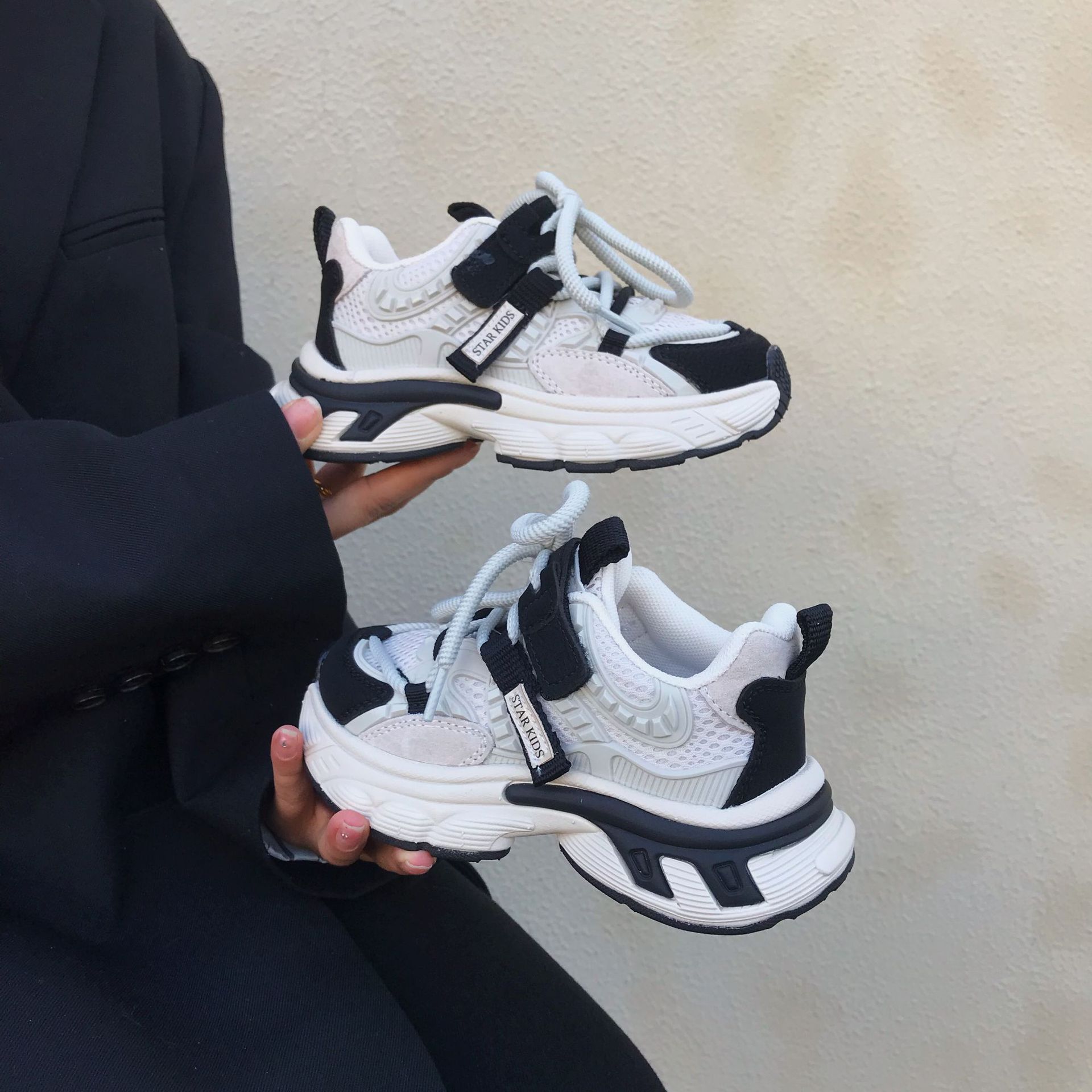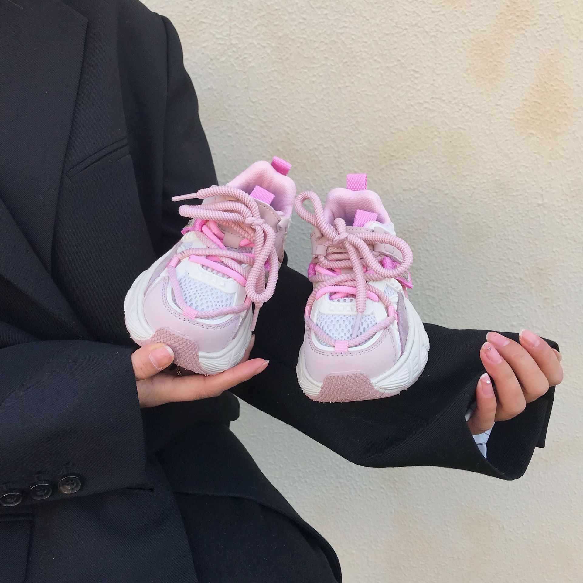 어린이 아빠 신발 2024 봄 새 소녀의 가벼운 아빠 신발 소년 통기성 미끄럼 방지 부드러운 바닥 캐주얼 운동화스토어 가기