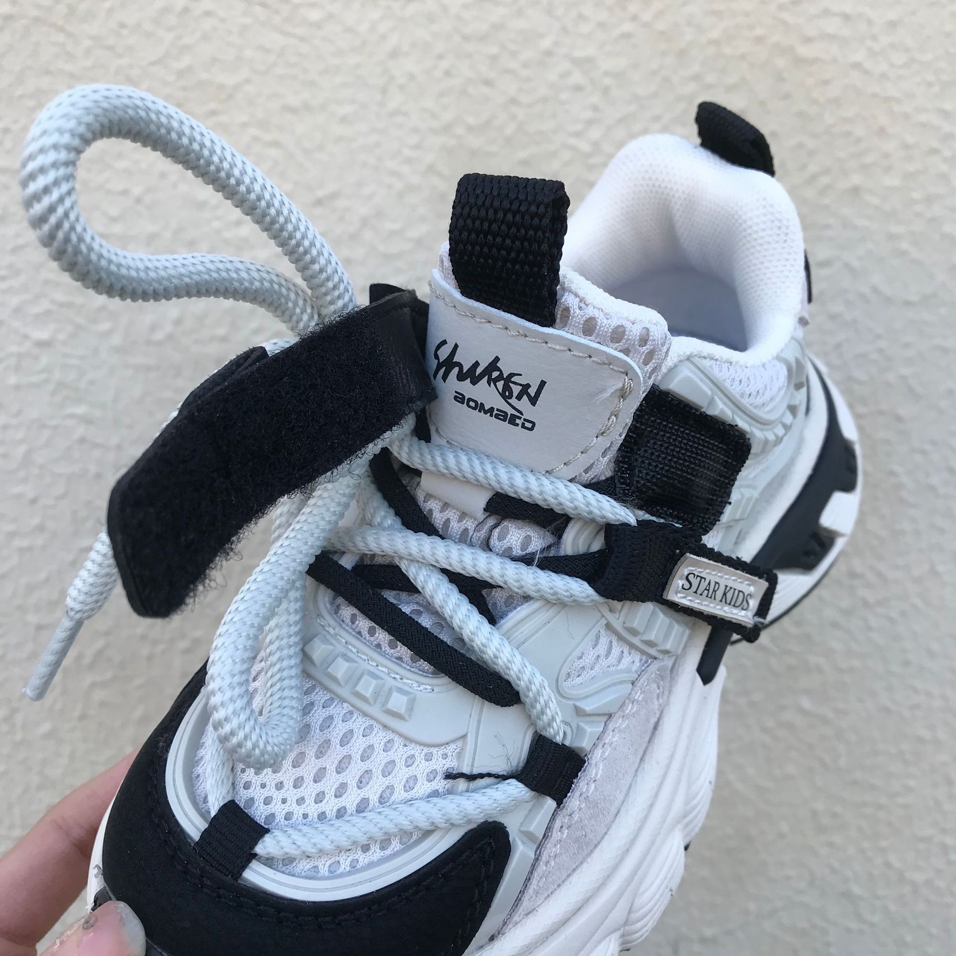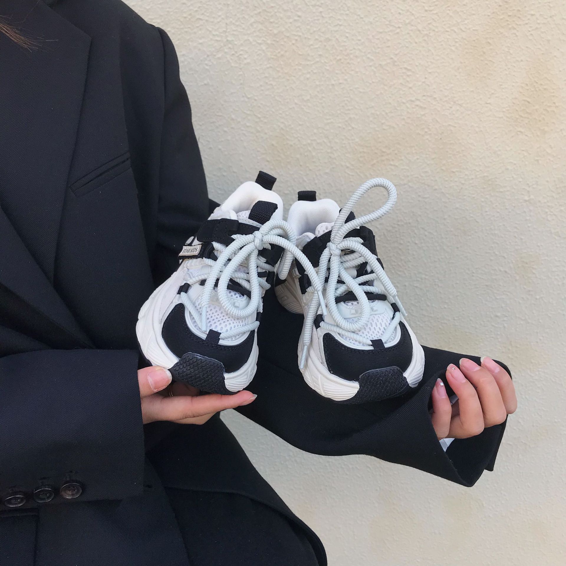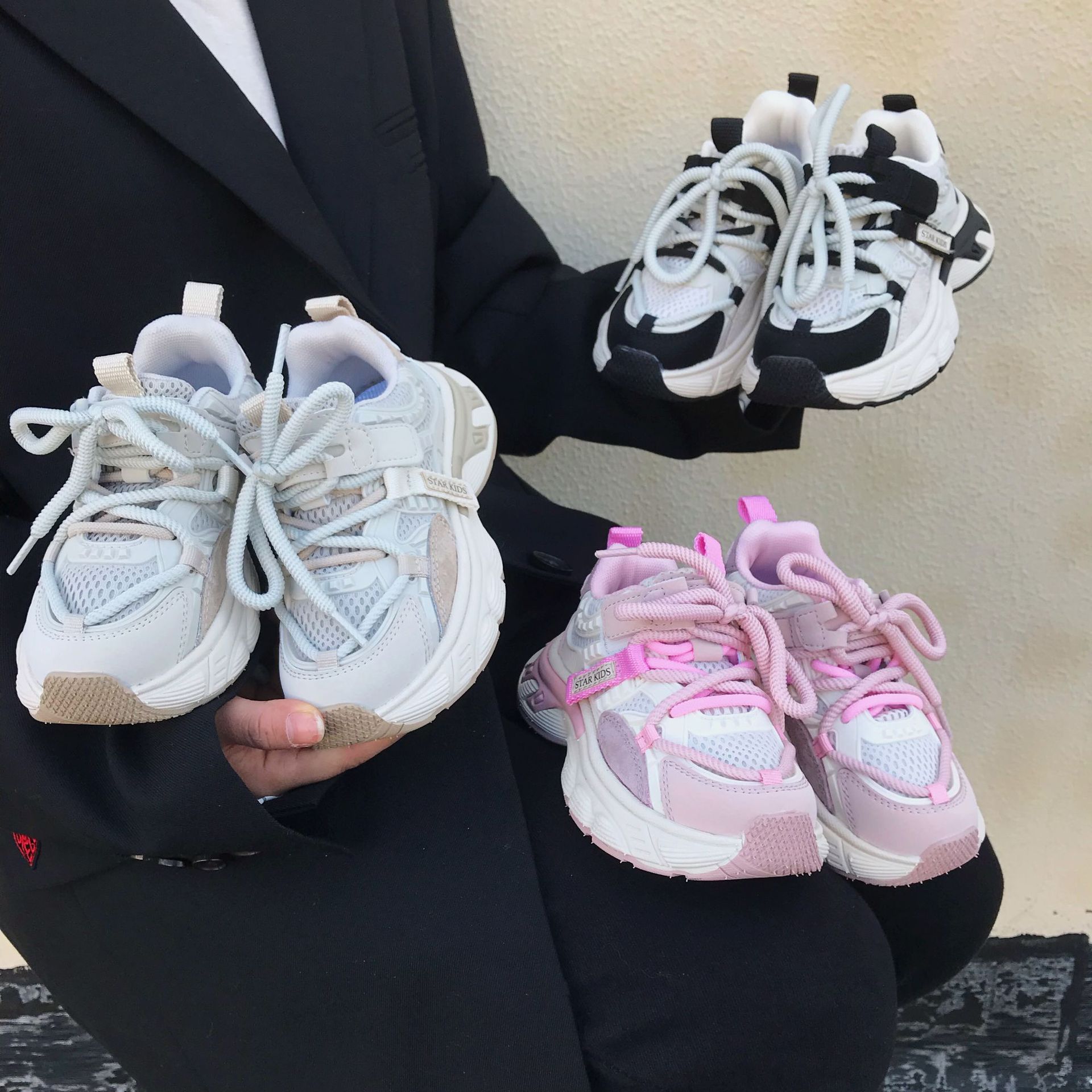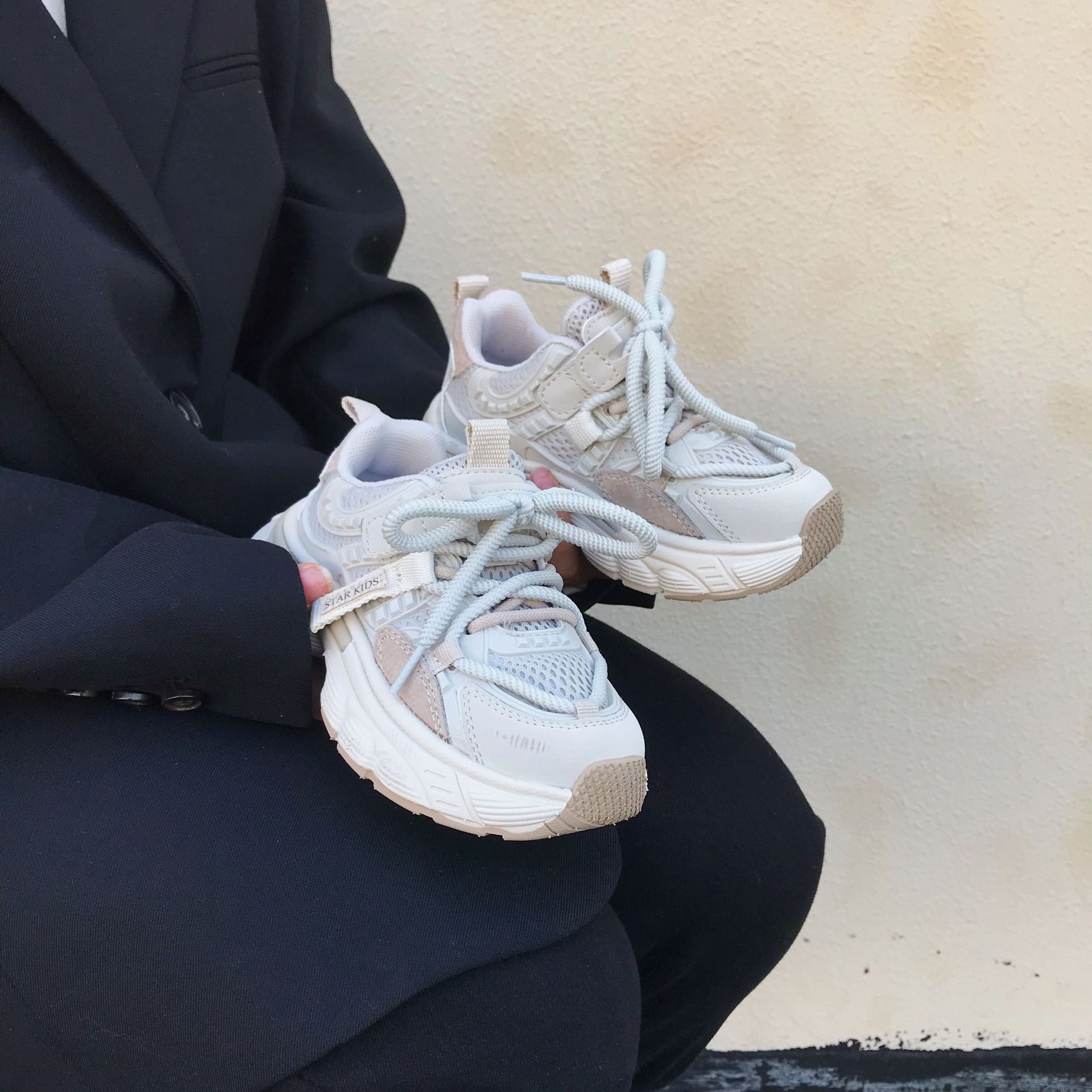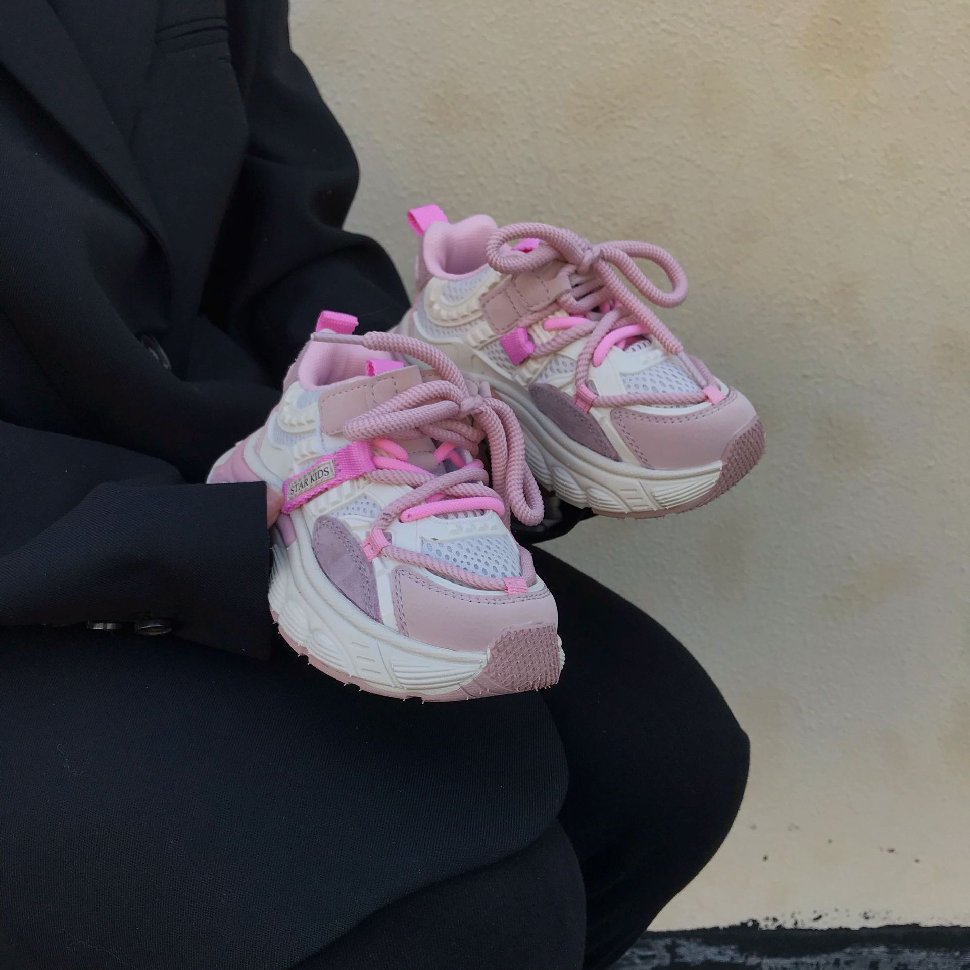 어린이 아빠 신발 2024 봄 새 소녀의 가벼운 아빠 신발 소년 통기성 미끄럼 방지 부드러운 바닥 캐주얼 운동화스토어 가기