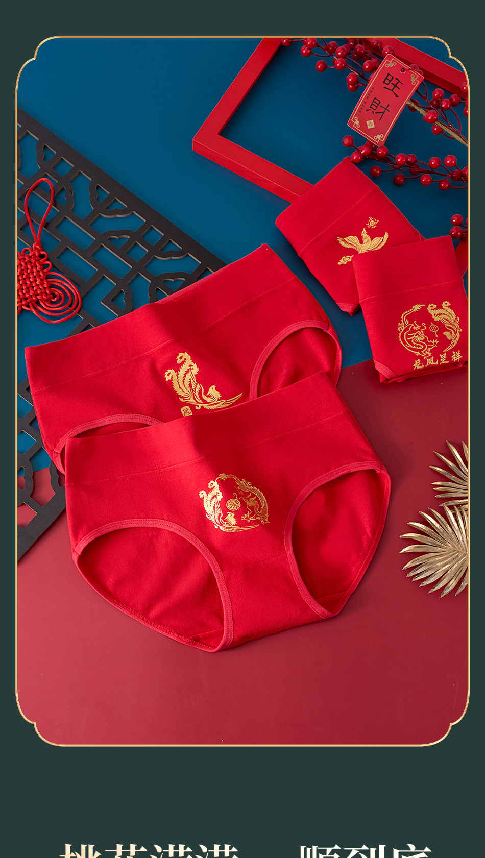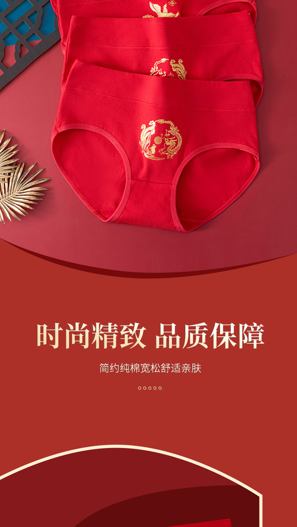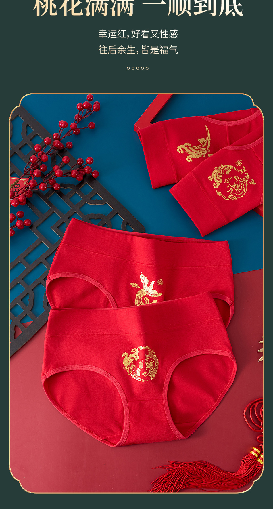 출생 년 순면 속옷 여성의 밝은 붉은 신부 결혼 축제 선물 드래곤 년 중반 허리 칼집 브리핑스토어 가기