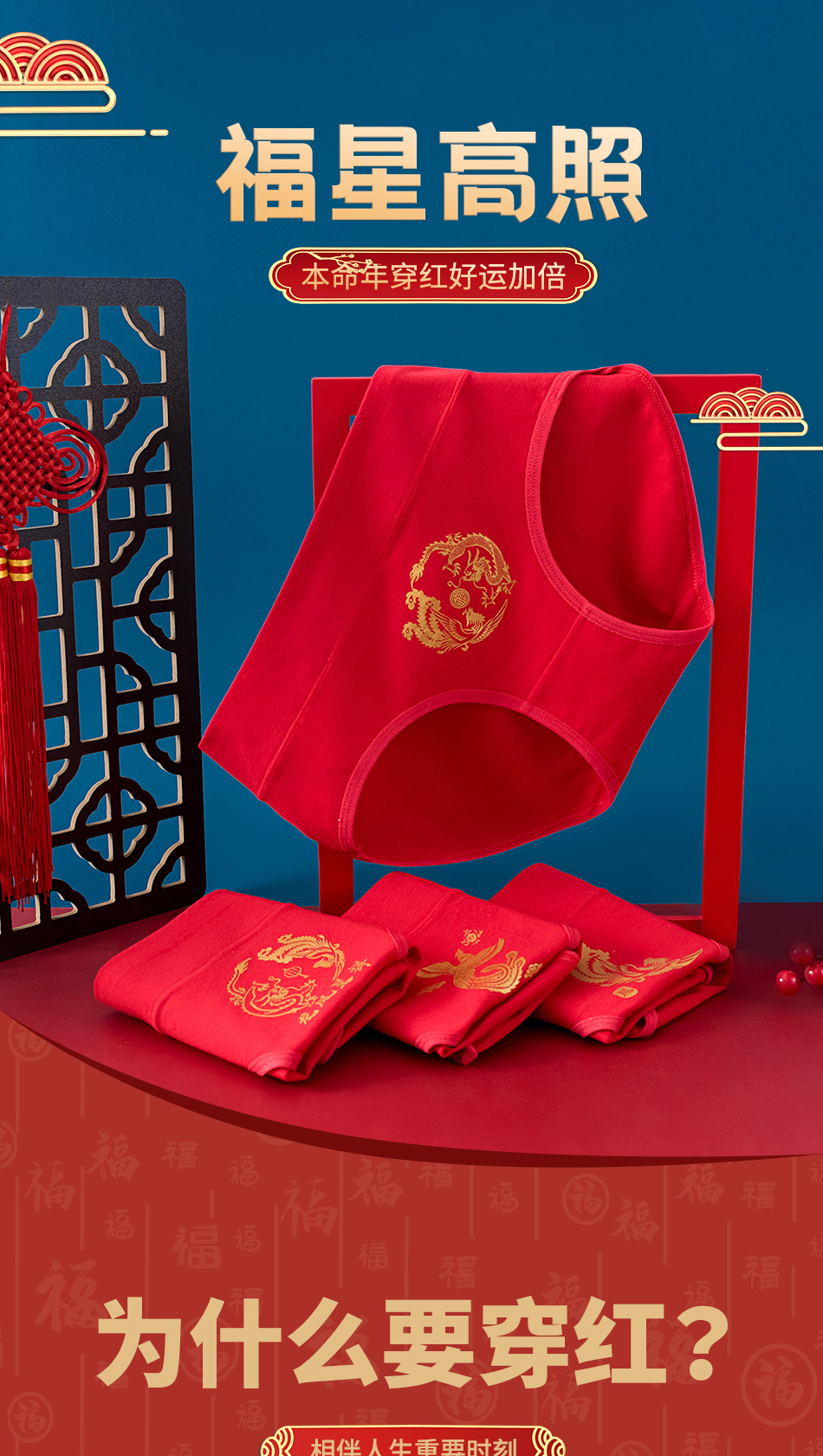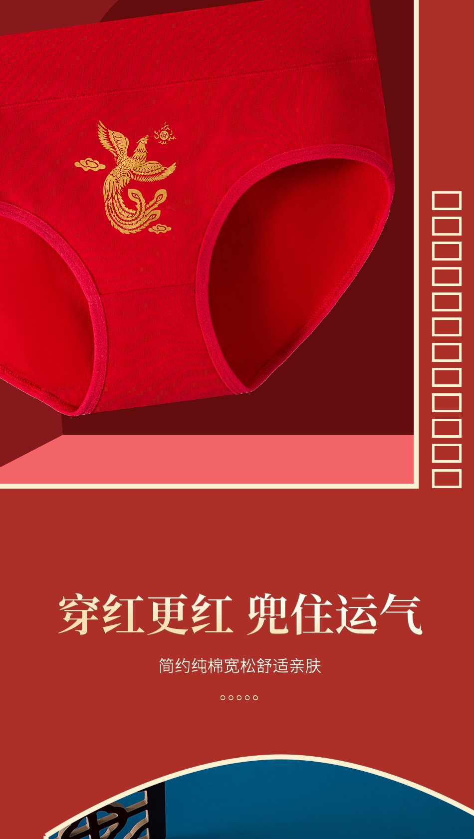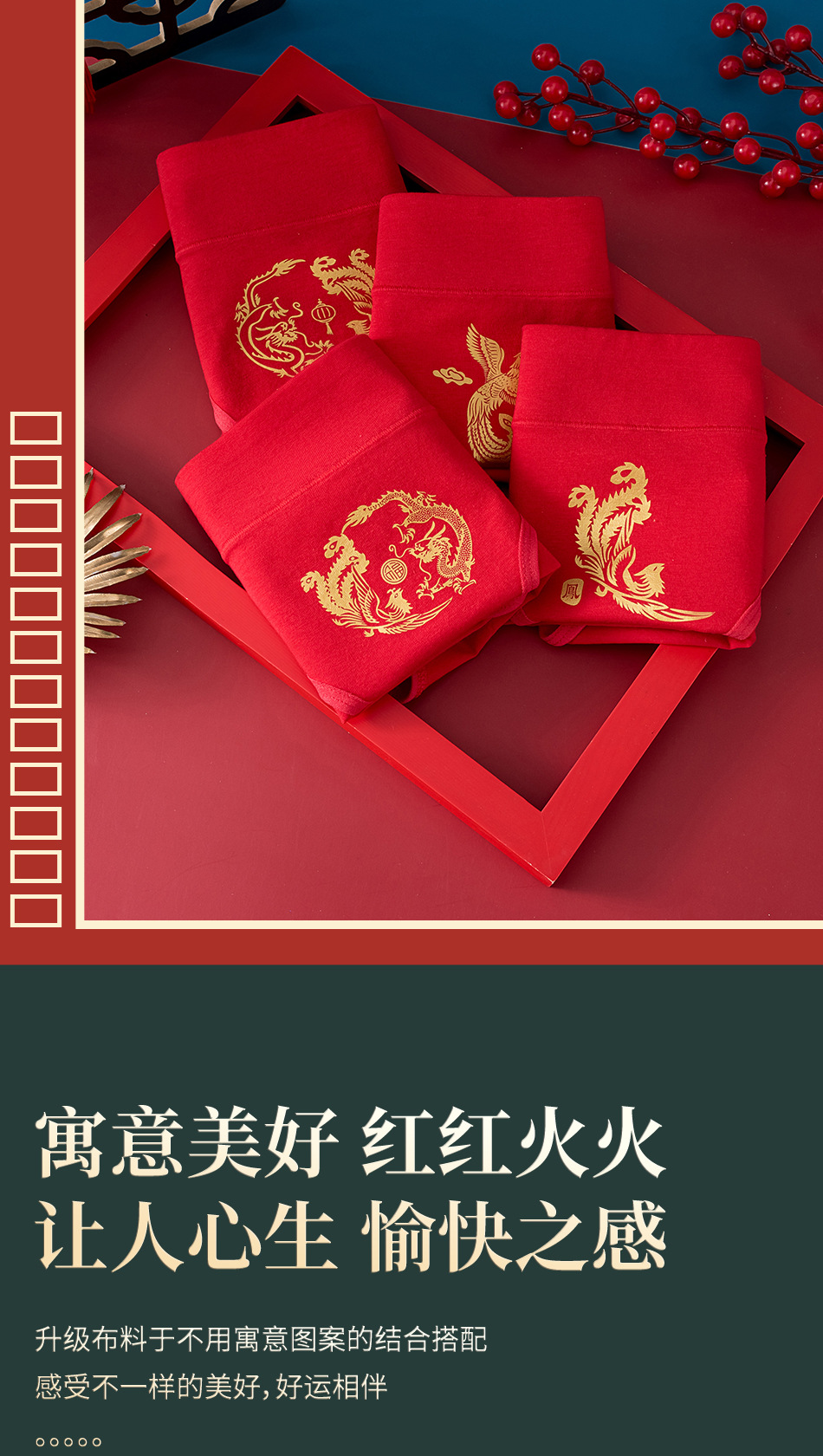 출생 년 순면 속옷 여성의 밝은 붉은 신부 결혼 축제 선물 드래곤 년 중반 허리 칼집 브리핑스토어 가기