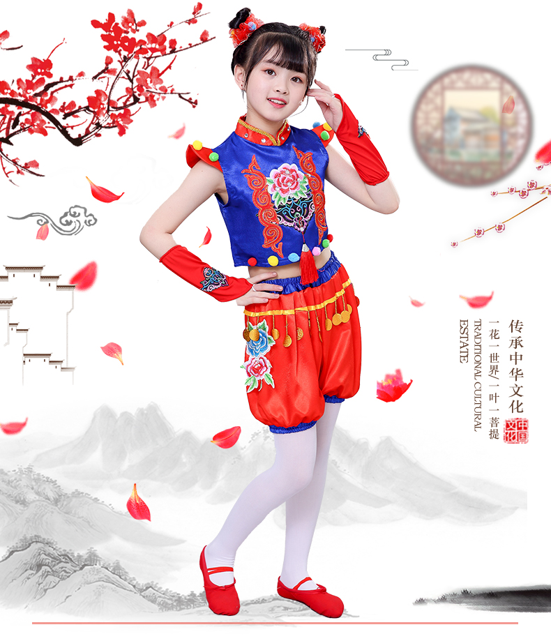 설날 어린이 축제 공연 의상 등불 의상 소녀 양코 의상 중국 Mengwa 국가 무용 의상