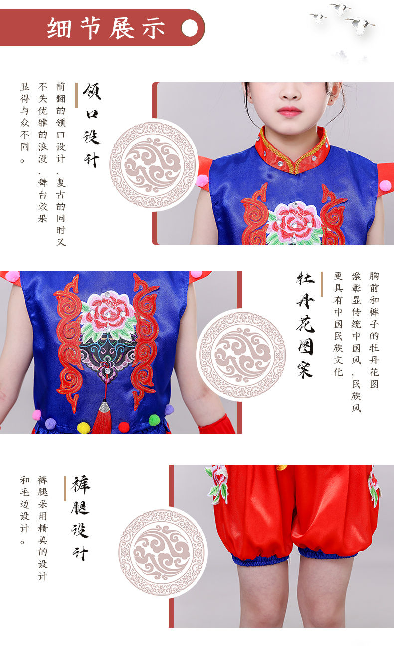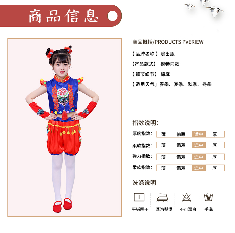 설날 어린이 축제 공연 의상 등불 의상 소녀 양코 의상 중국 Mengwa 국가 무용 의상스토어 가기
