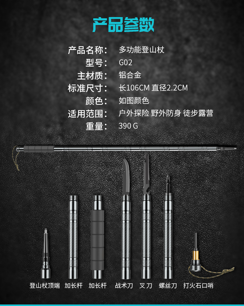 세트 캠핑 용품 야외 스크류 드라이버 하이킹 다기능 트레킹 폴 접이식 자기 방어 스틱 워킹 스틱 마운틴 하이킹