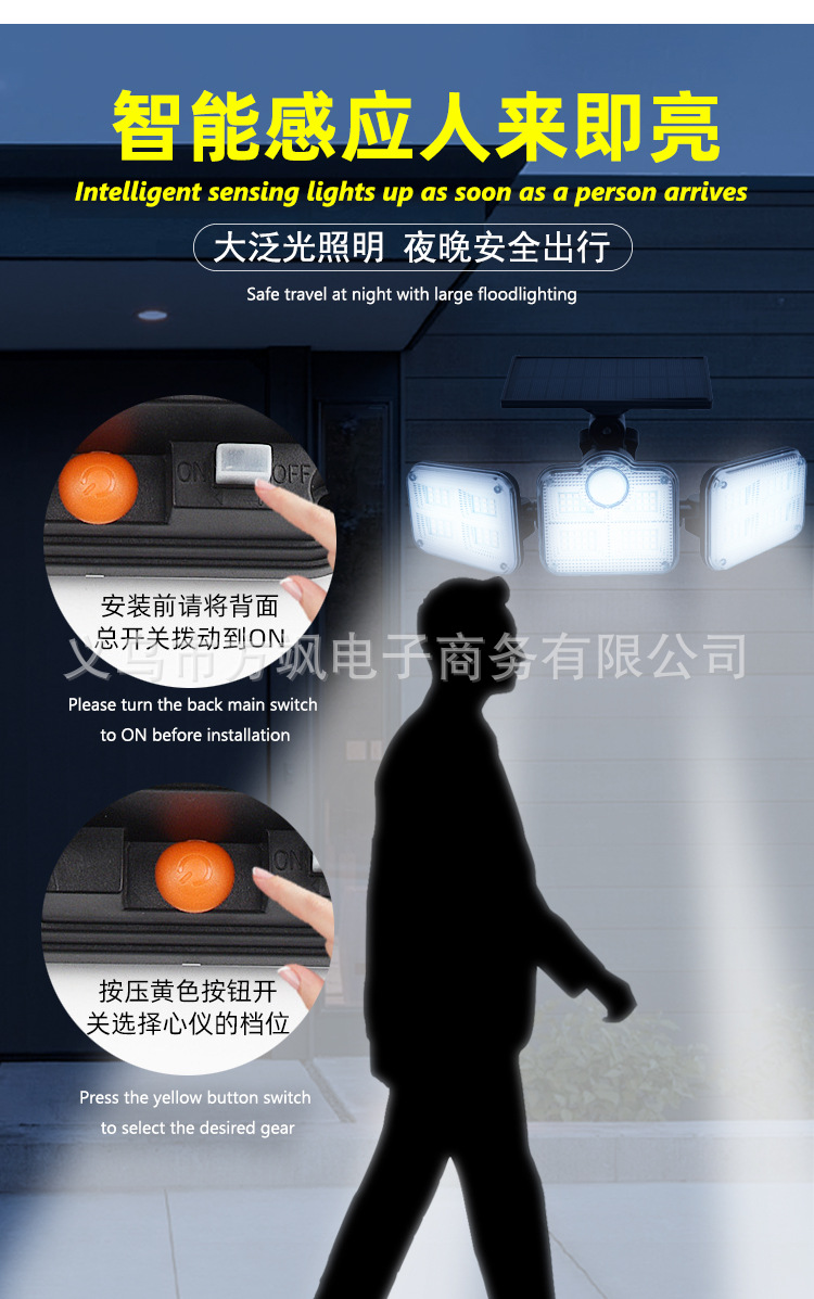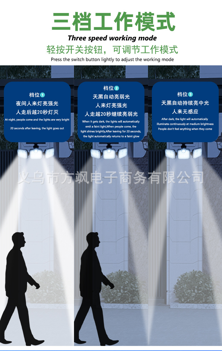 국경 간 태양 야외 정원 램프 슈퍼 밝은 인체 유도 램프 LED 3 헤드 조명 방수 야외 벽 램프스토어 가기
