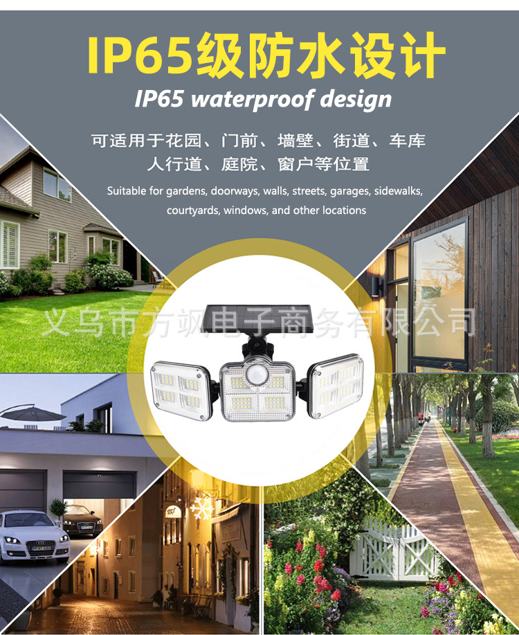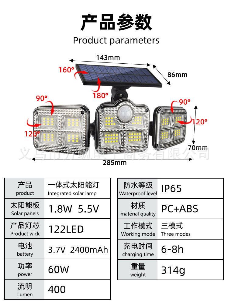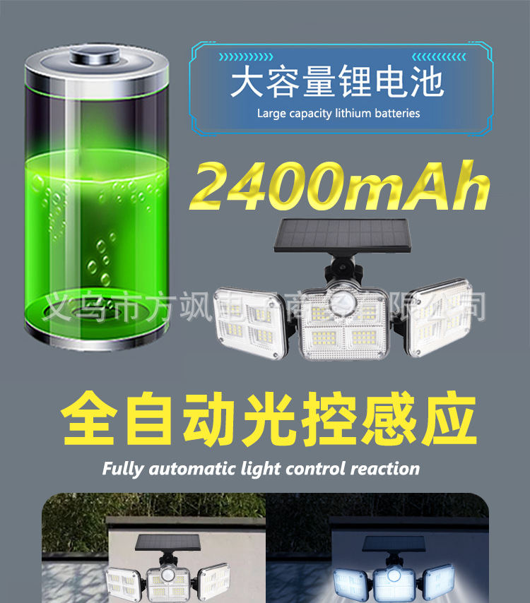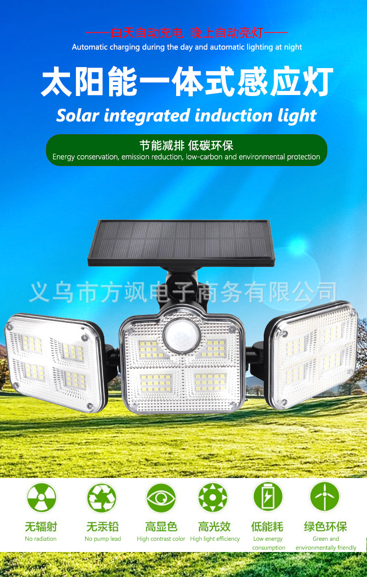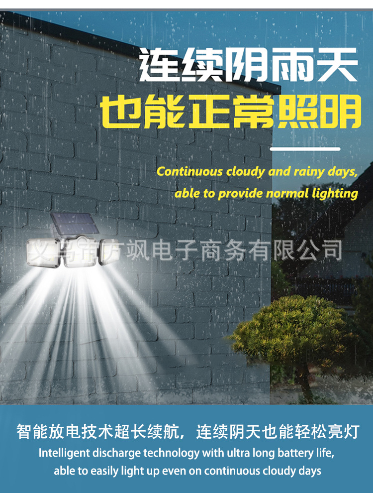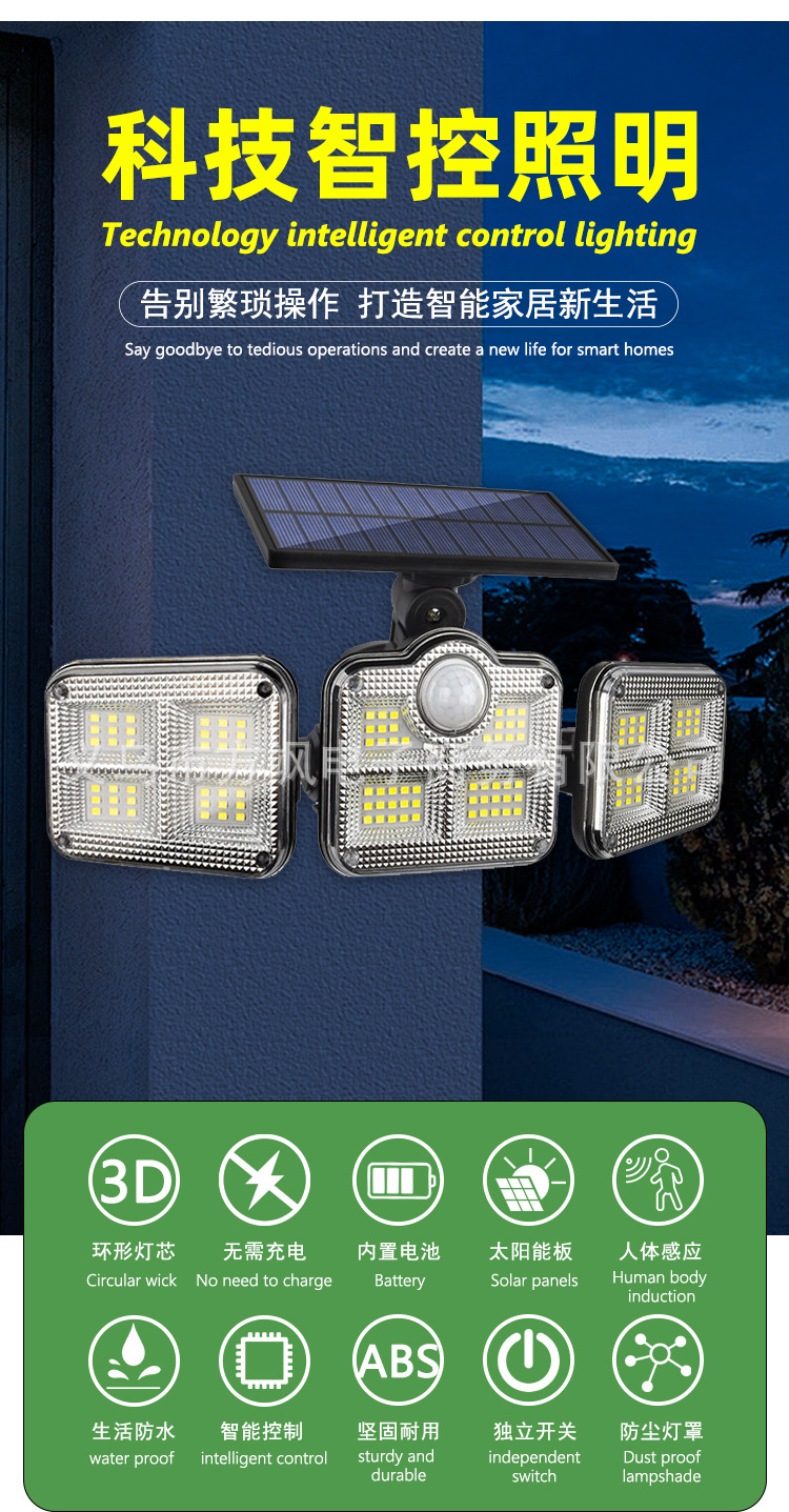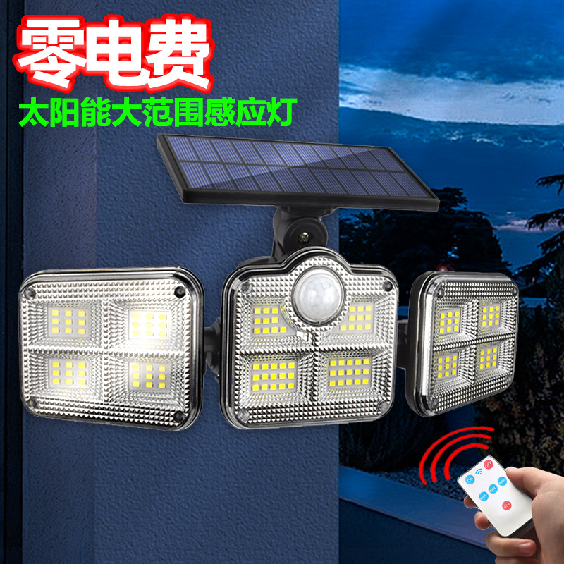 국경 간 태양 야외 정원 램프 슈퍼 밝은 인체 유도 램프 LED 3 헤드 조명 방수 야외 벽 램프