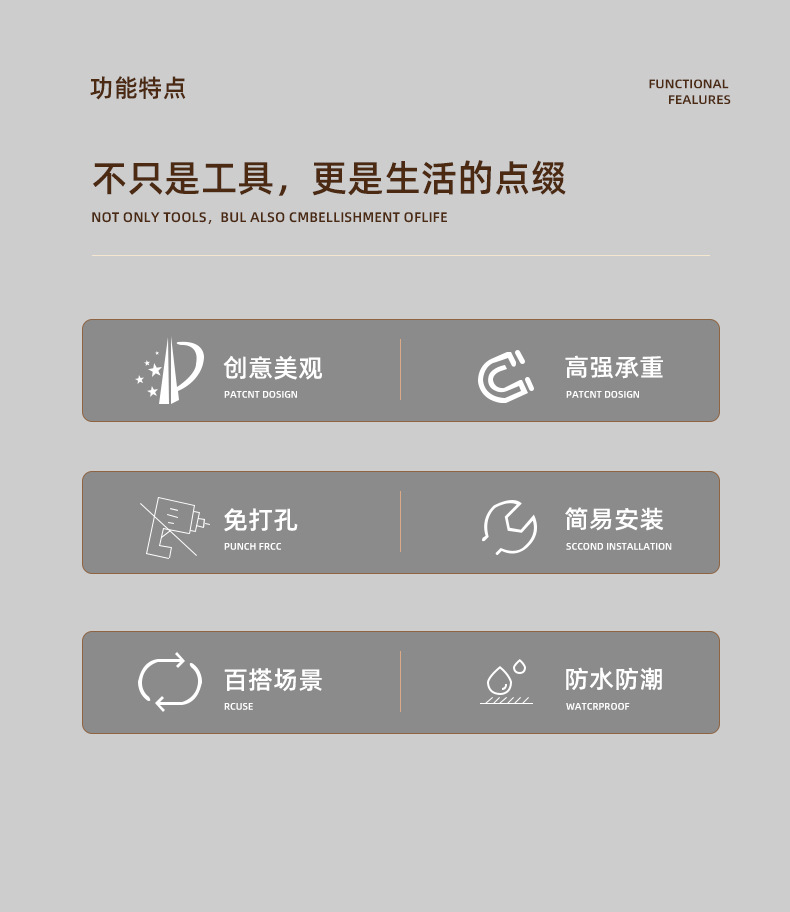 크림 스타일 후크 강한 하중지지 펀치가없는 원활한 자체 접착 후크 욕실 주방 수건 코트와 모자 끈적 끈적한 후크