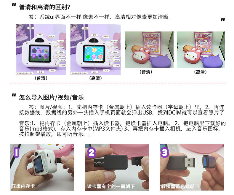 • A3 파우더 헬로 키티 4000 HD 듀얼 카메라 16g 카드 리더