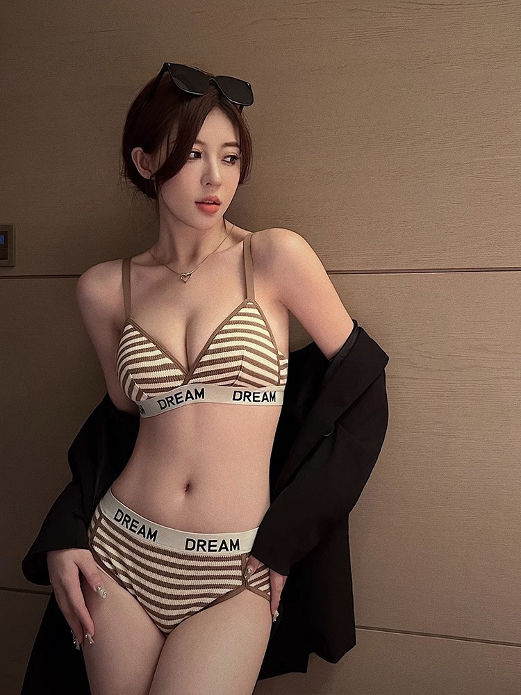 트라이앵글 컵 속옷 여성의 작은 가슴이 무선 얇은 여름 브래지어 안티 처짐 스트라이프 섹시한 브래지어 세트