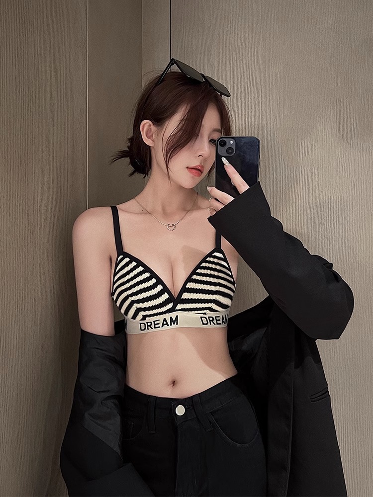 트라이앵글 컵 속옷 여성의 작은 가슴이 무선 얇은 여름 브래지어 안티 처짐 스트라이프 섹시한 브래지어 세트스토어 가기