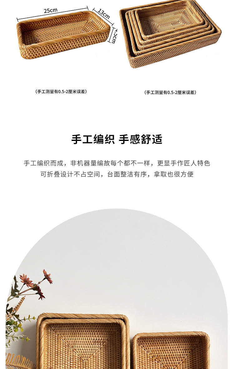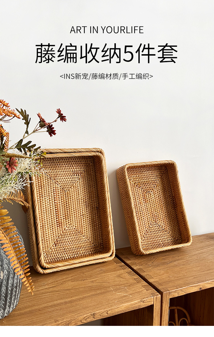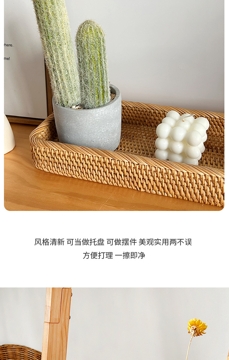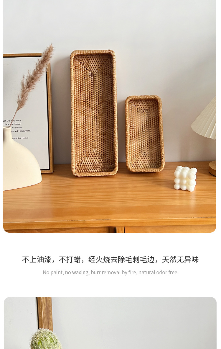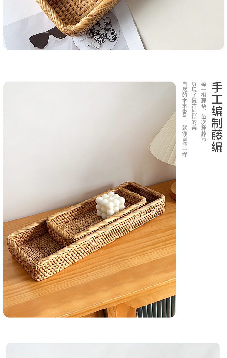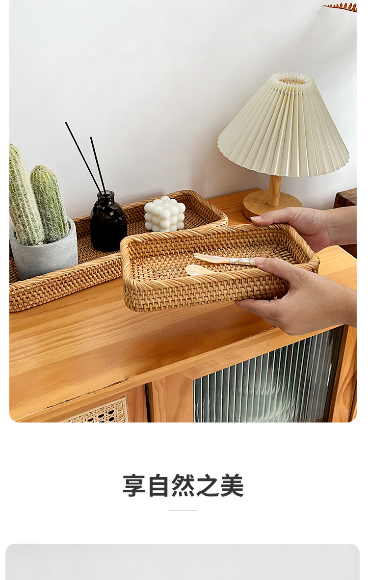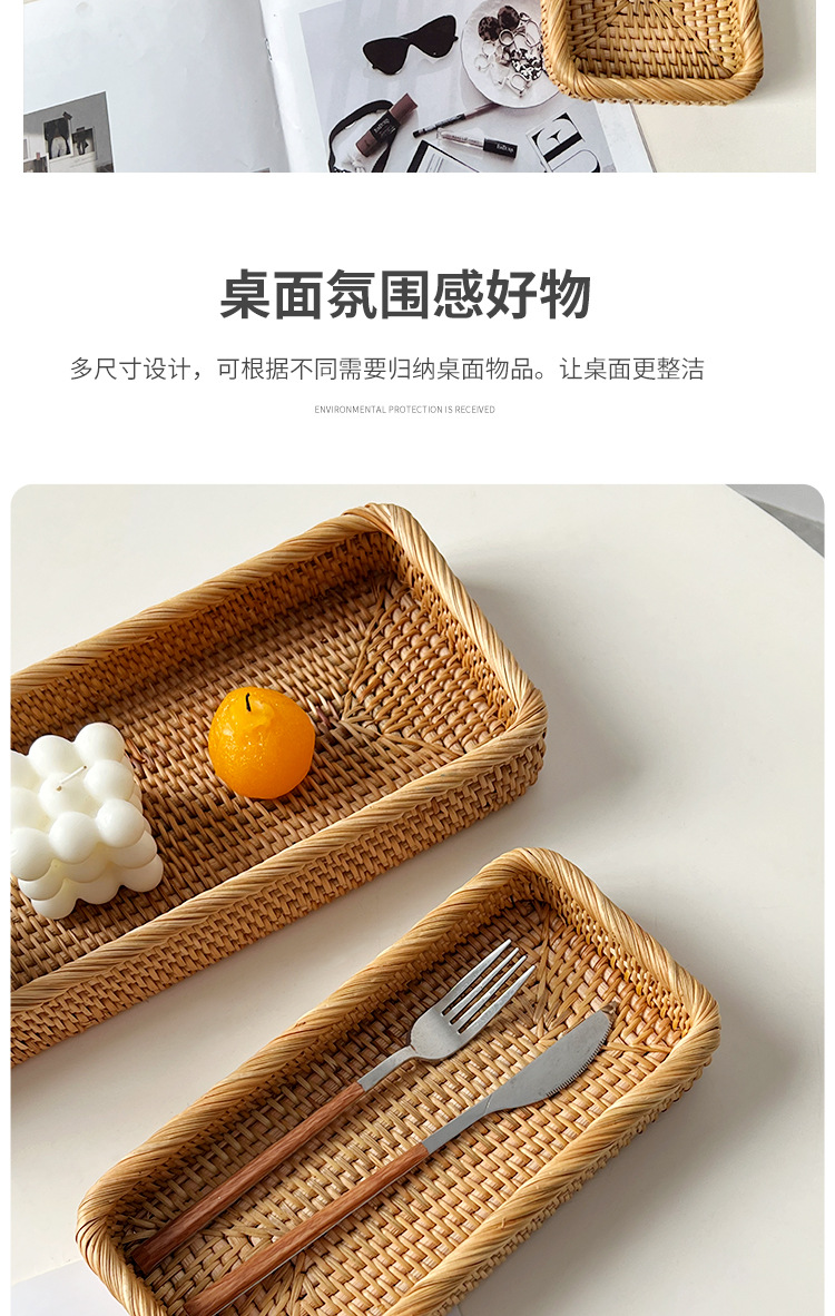 수제 등나무 데스크탑 스퀘어 커피 빵 트레이 노르딕 인 스타일 가벼운 고급 스토리지 랙 화장품 보관 바구니
