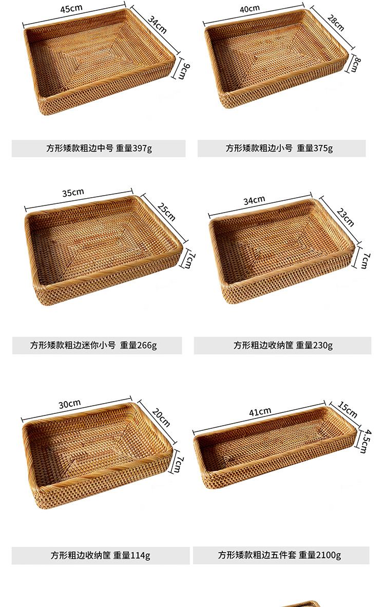 • 등나무 바구니 휴대용 사각형-직각 24*14*11cm