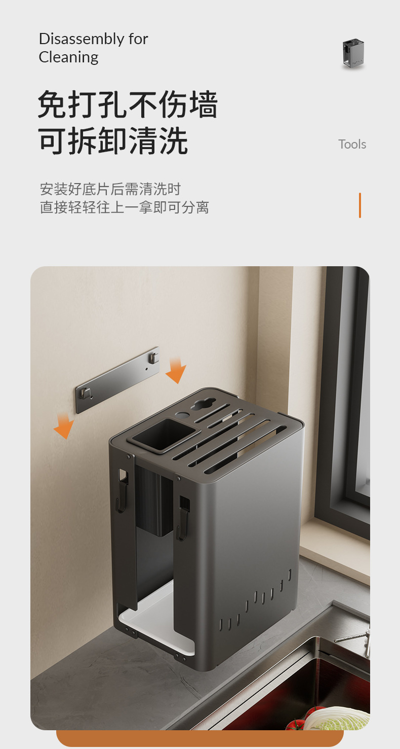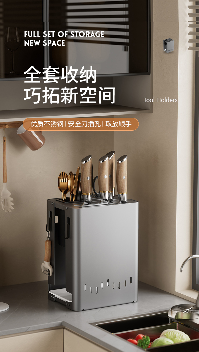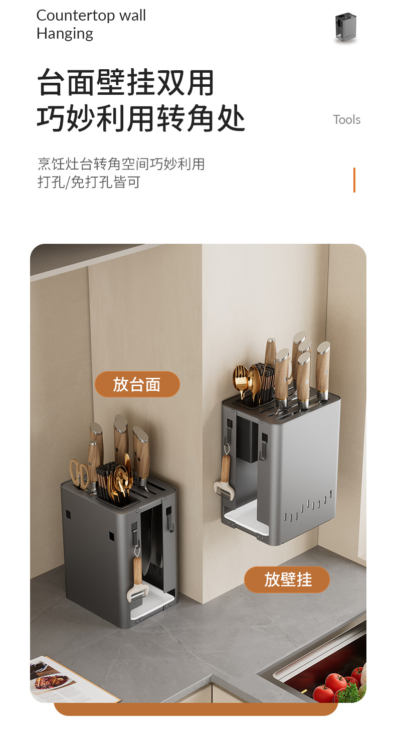 주방 조리대 수납 선반 다용도 칼꽂이 젓가락통 무타공 벽걸이형 칼꽂이 젓가락통 일체형 수납 선반