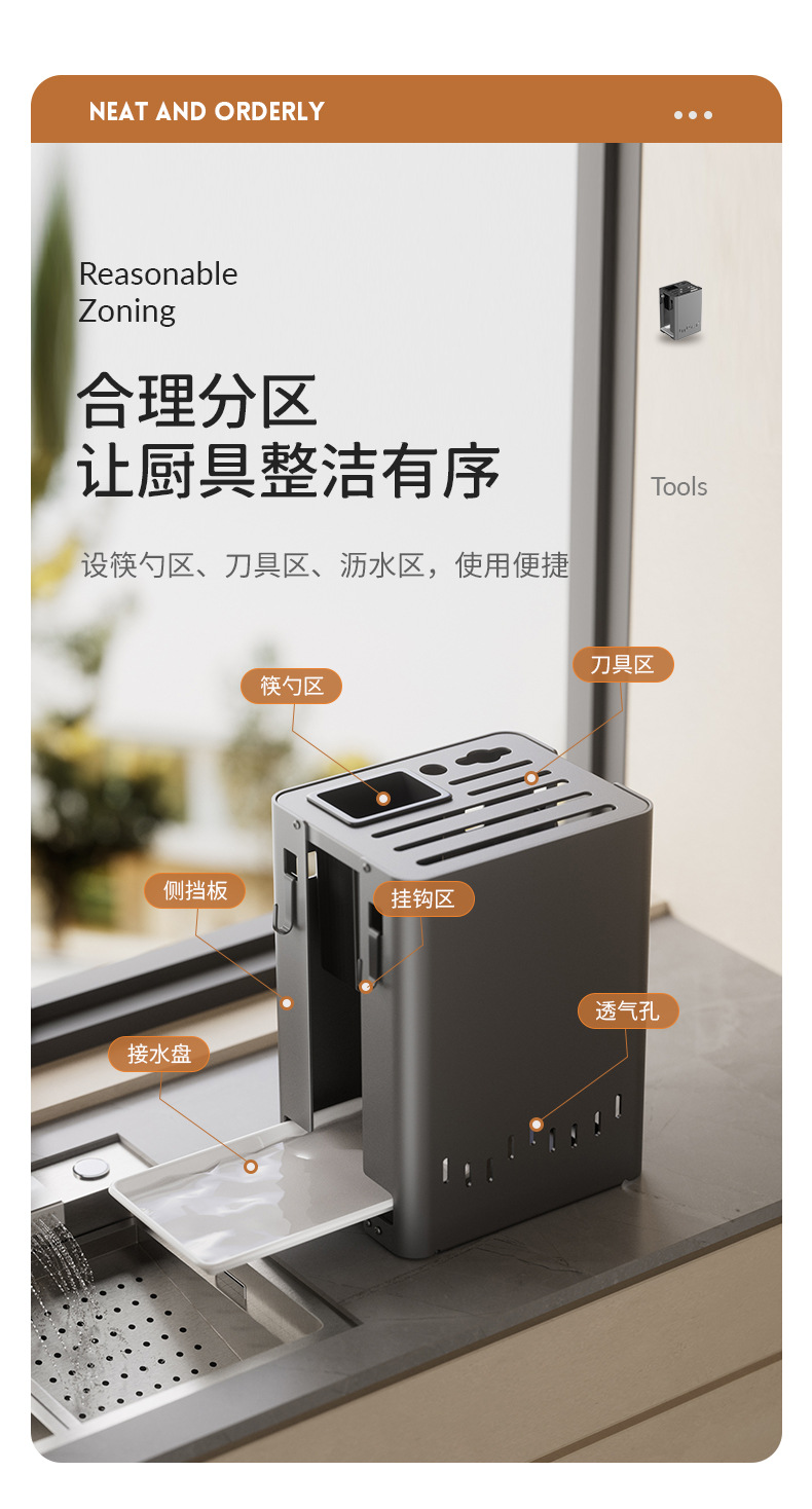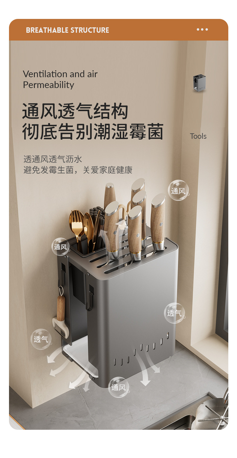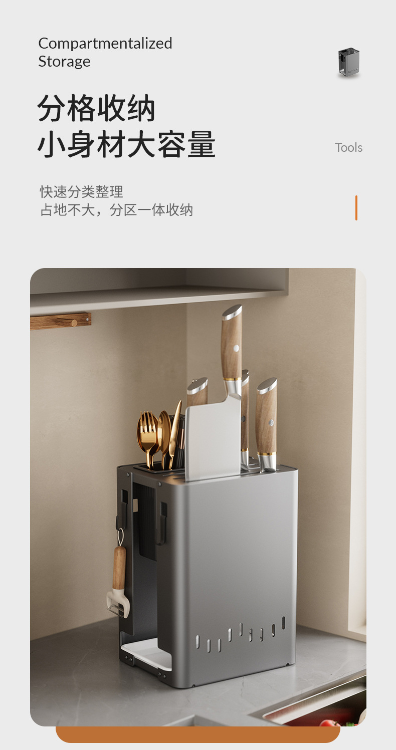 주방 조리대 수납 선반 다용도 칼꽂이 젓가락통 무타공 벽걸이형 칼꽂이 젓가락통 일체형 수납 선반