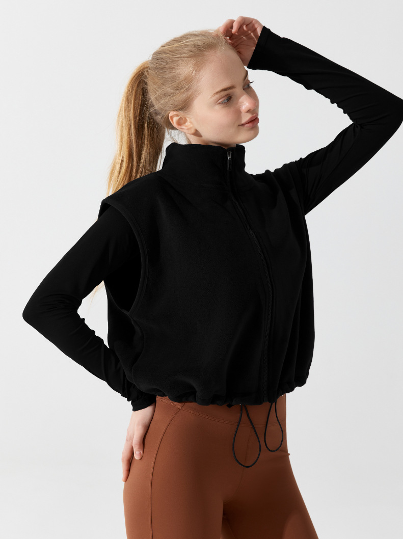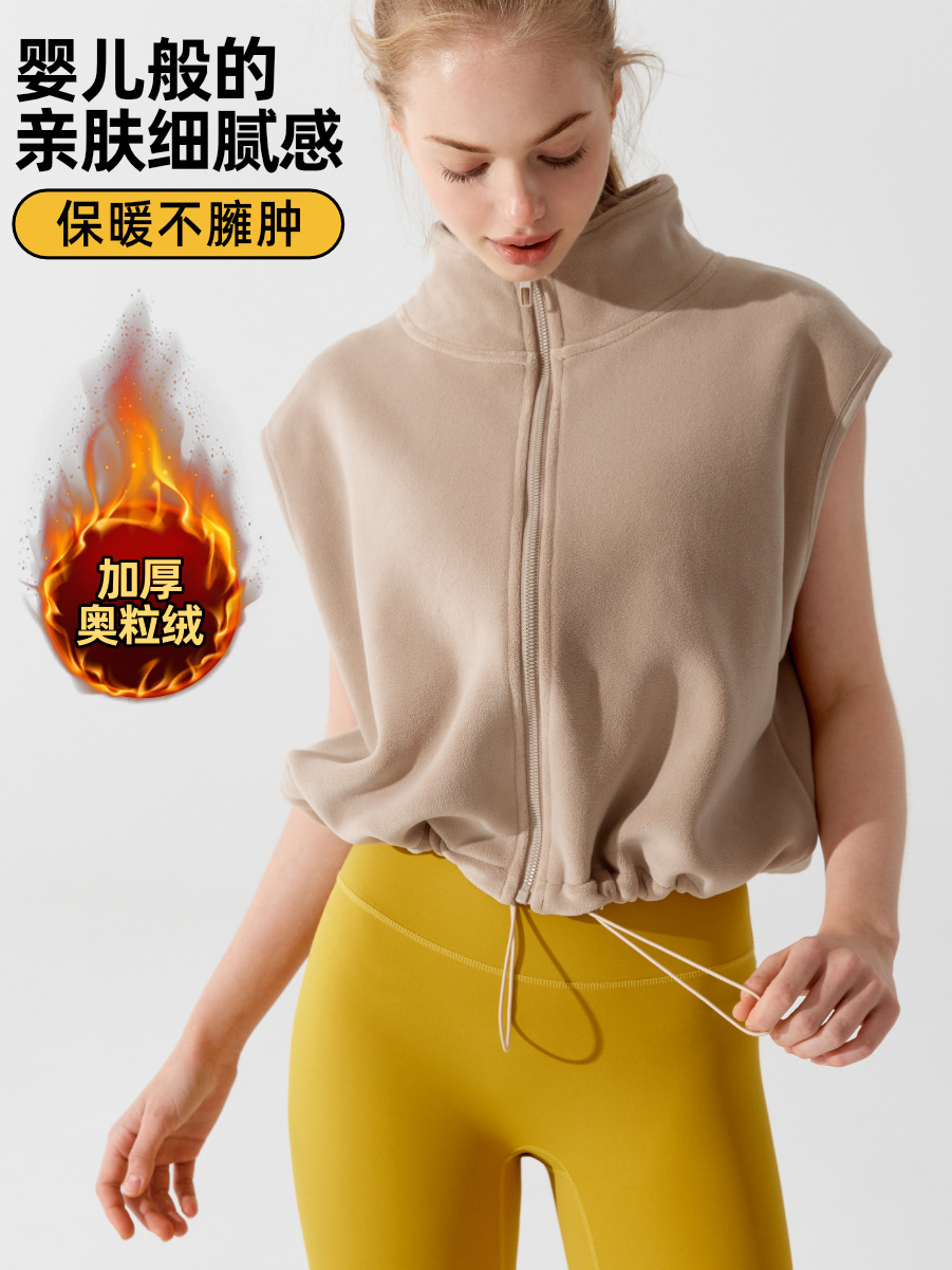겨울 따뜻한 조끼 피트니스 재킷 여성의 방풍 방한 달리기 스포츠 폴라 플리스 피트니스 의류 조끼 요가 옷