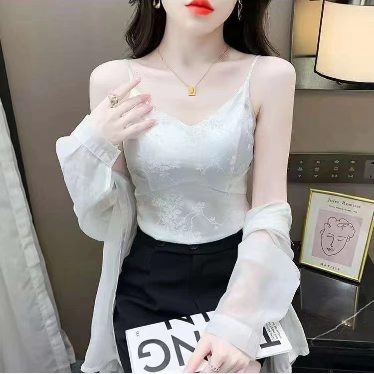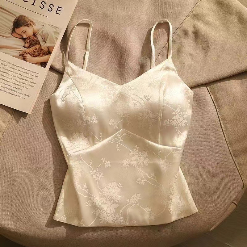 프랑스 Jacquard Satin Camisole 가슴 패드 올매치 의상 틈새 쇼트베이스 자켓으로 여자 자수 조끼스토어 가기