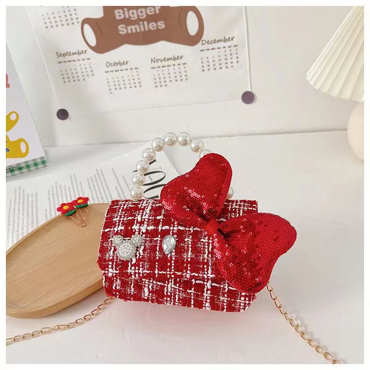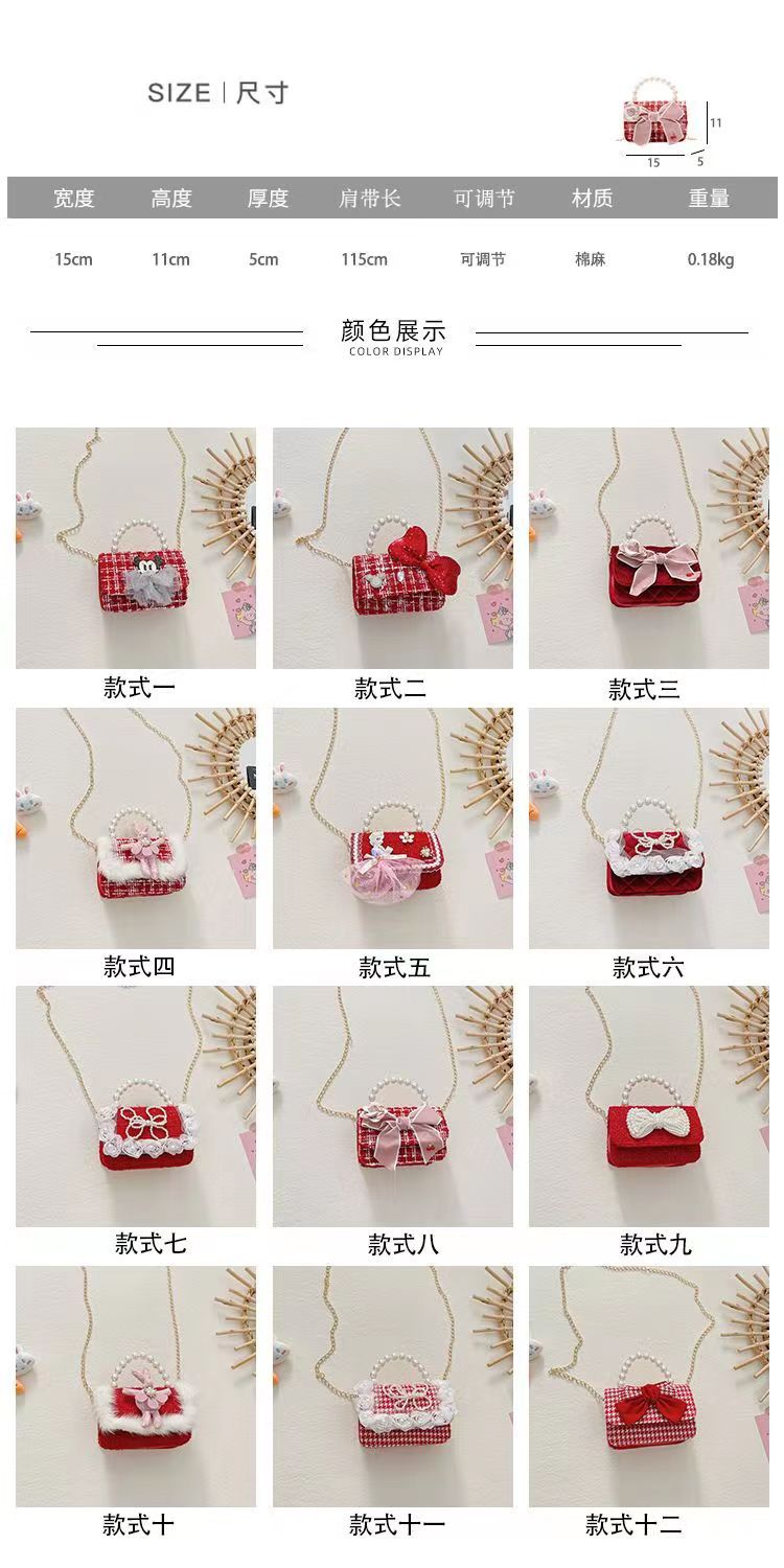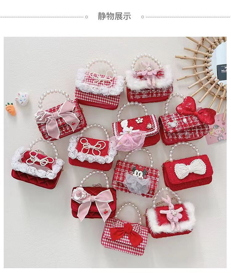 어린이 신년 가방 서양식 어린 소녀 귀여운 소녀 메신저 가방 공주 아기 빨간 새해 인사말 패션 향수스토어 가기