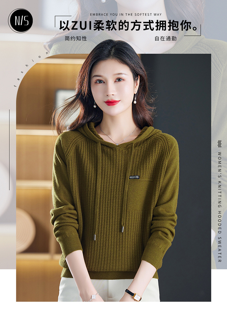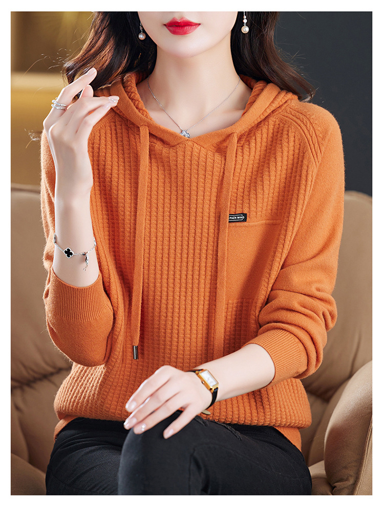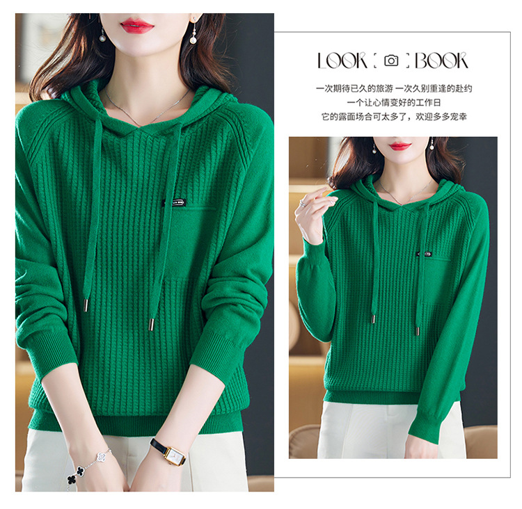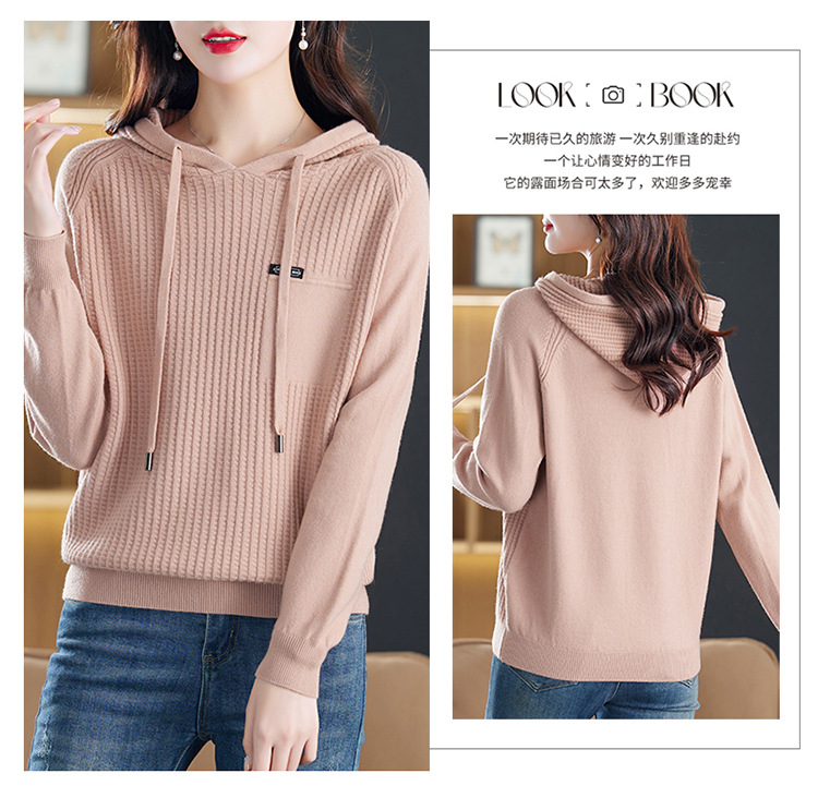 새로운 스웨터 후드 여성 가을과 겨울 두꺼운 유행 캐주얼 올 매치 느슨한 풀오버 니트 후드 스웨터 여성스토어 가기
