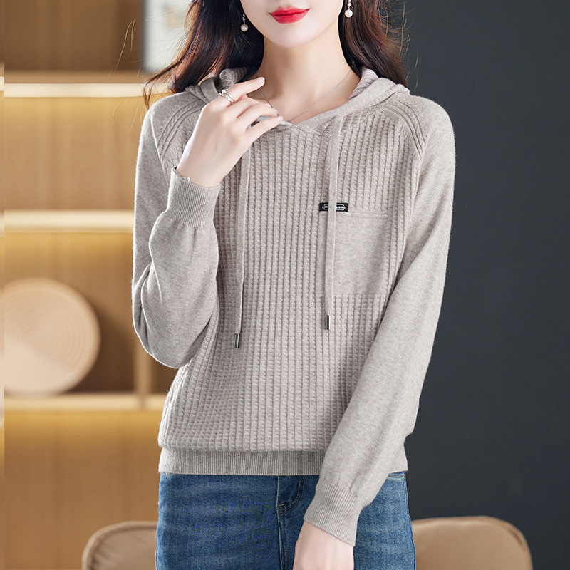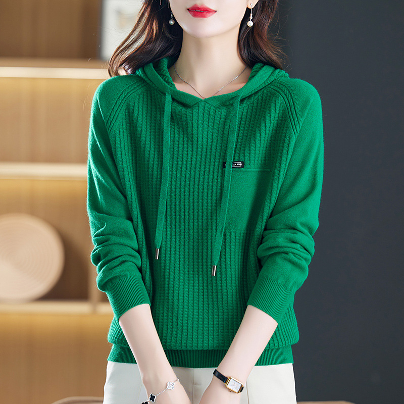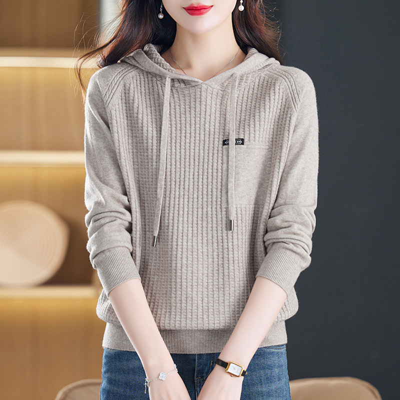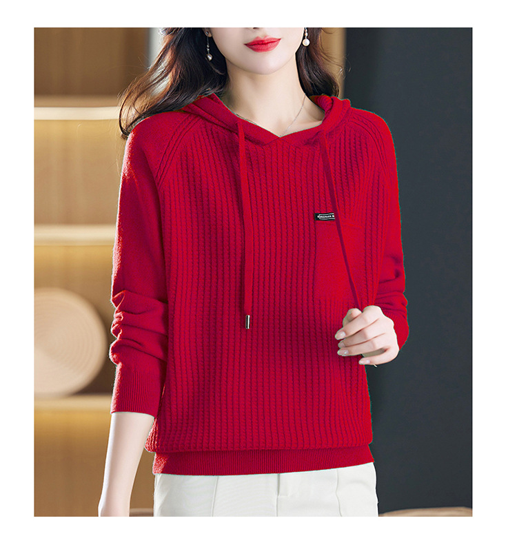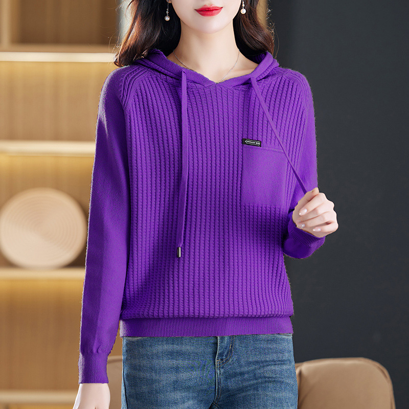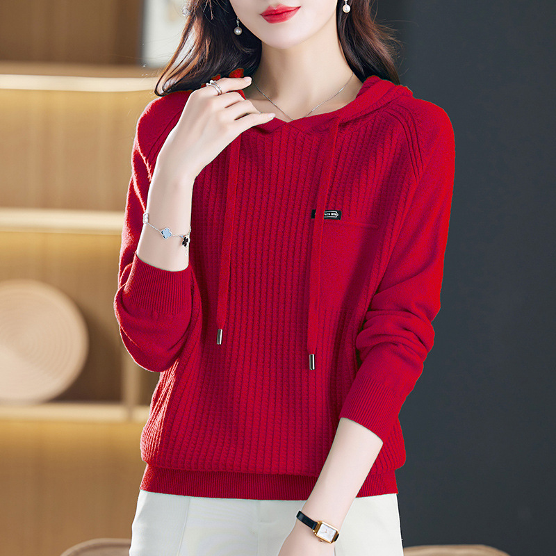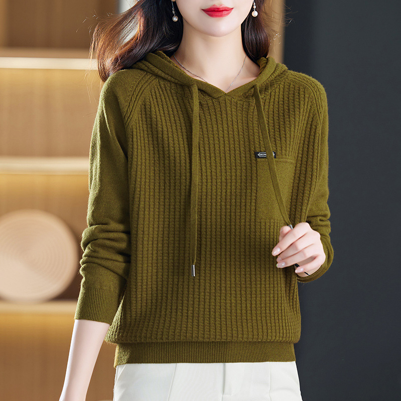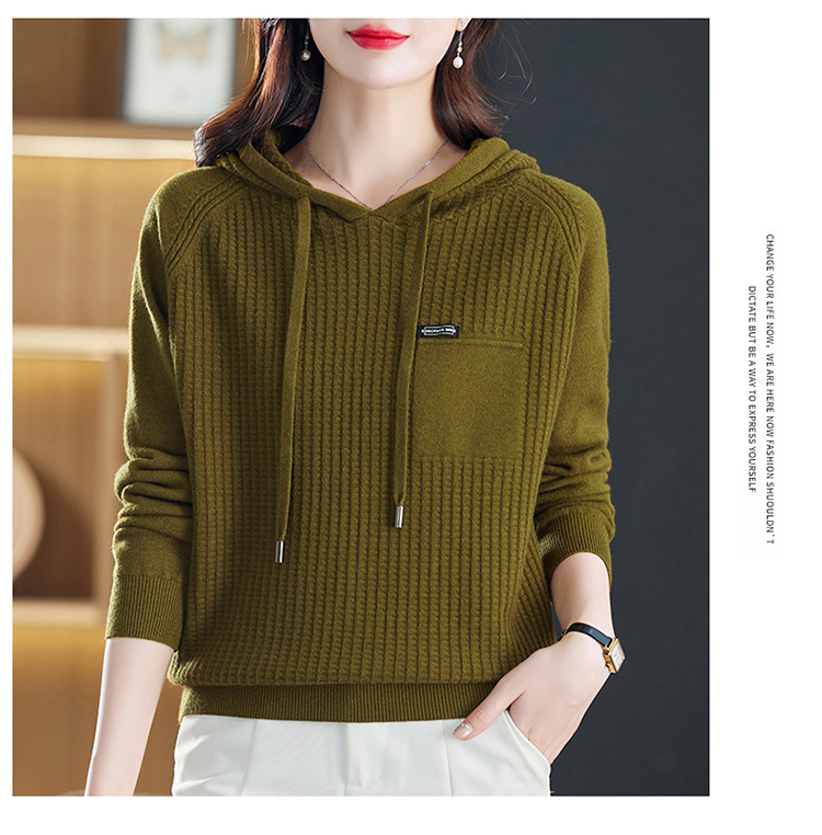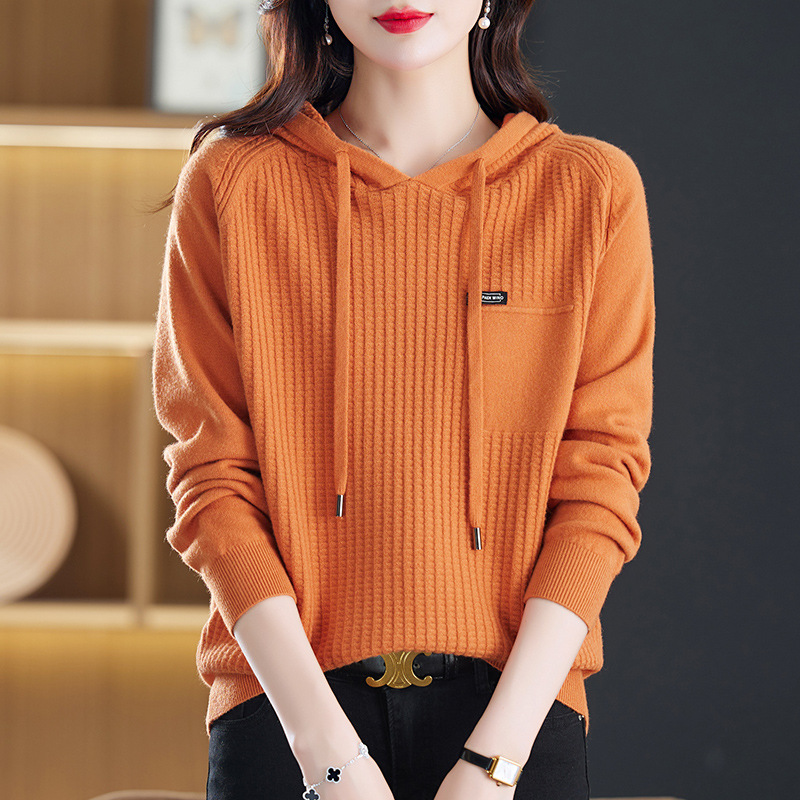 새로운 스웨터 후드 여성 가을과 겨울 두꺼운 유행 캐주얼 올 매치 느슨한 풀오버 니트 후드 스웨터 여성