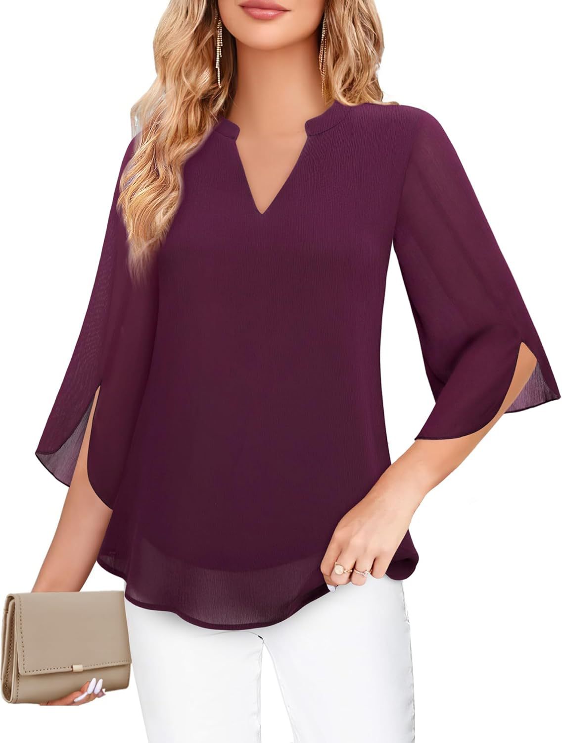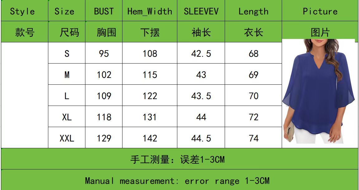 2024 국경 간 아마존 캐주얼 여름 새로운 유럽과 미국 여성 꽃잎 소매 탑 느슨한 V 넥 쉬폰 셔츠스토어 가기
