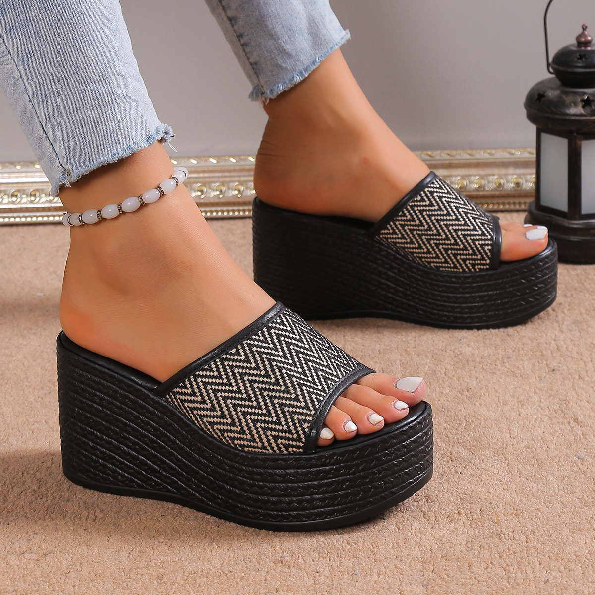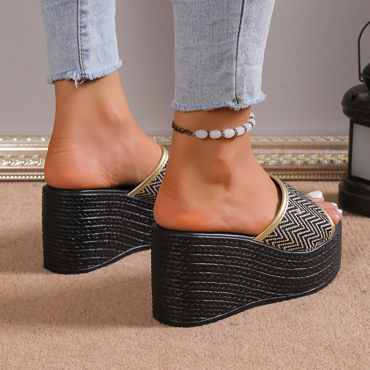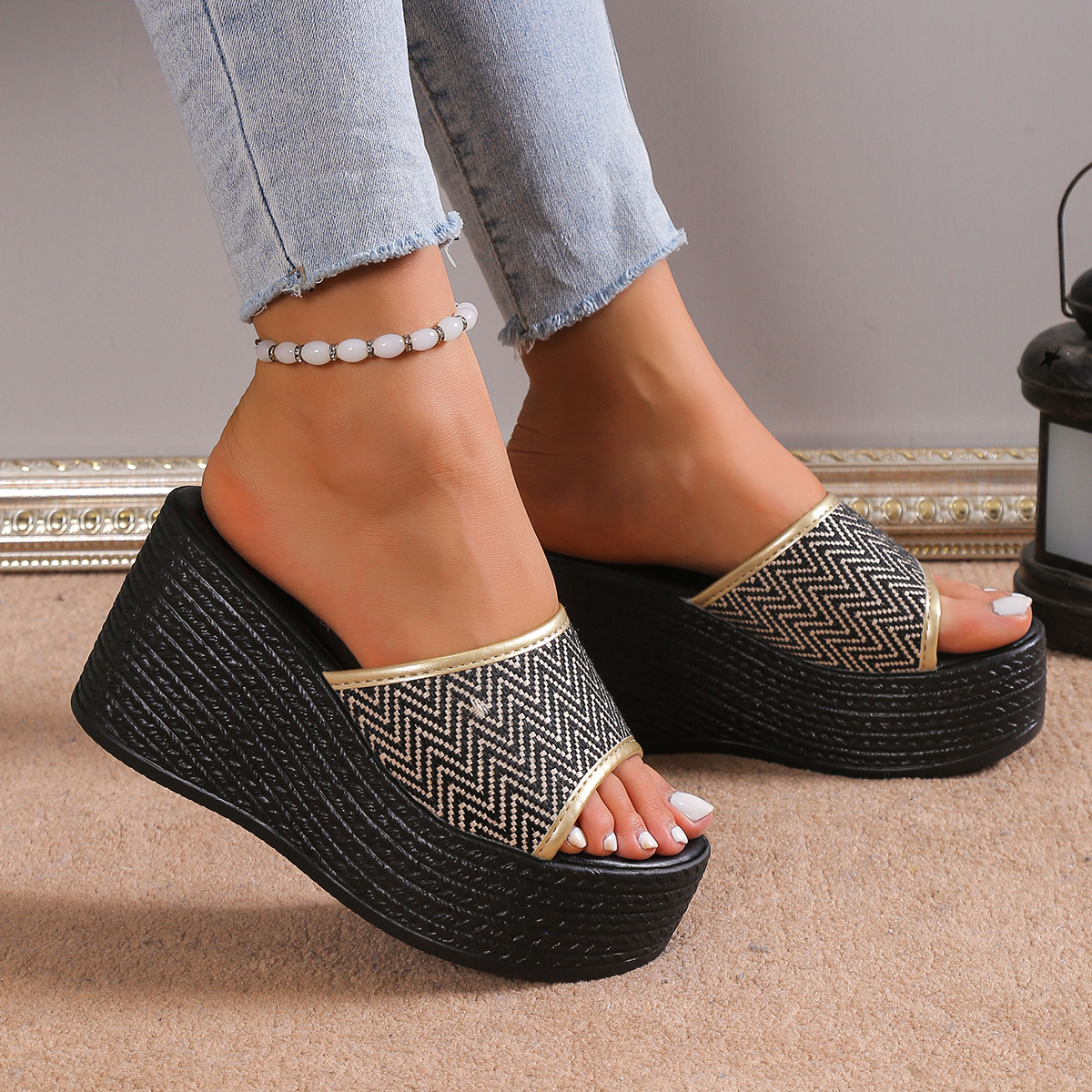 2023 여름 새로운 슬리퍼 여성용 스트라이프 타입 두꺼운 하단 웨지 캐주얼 플러스 사이즈 여성용 샌들 및 슬리퍼 배치스토어 가기