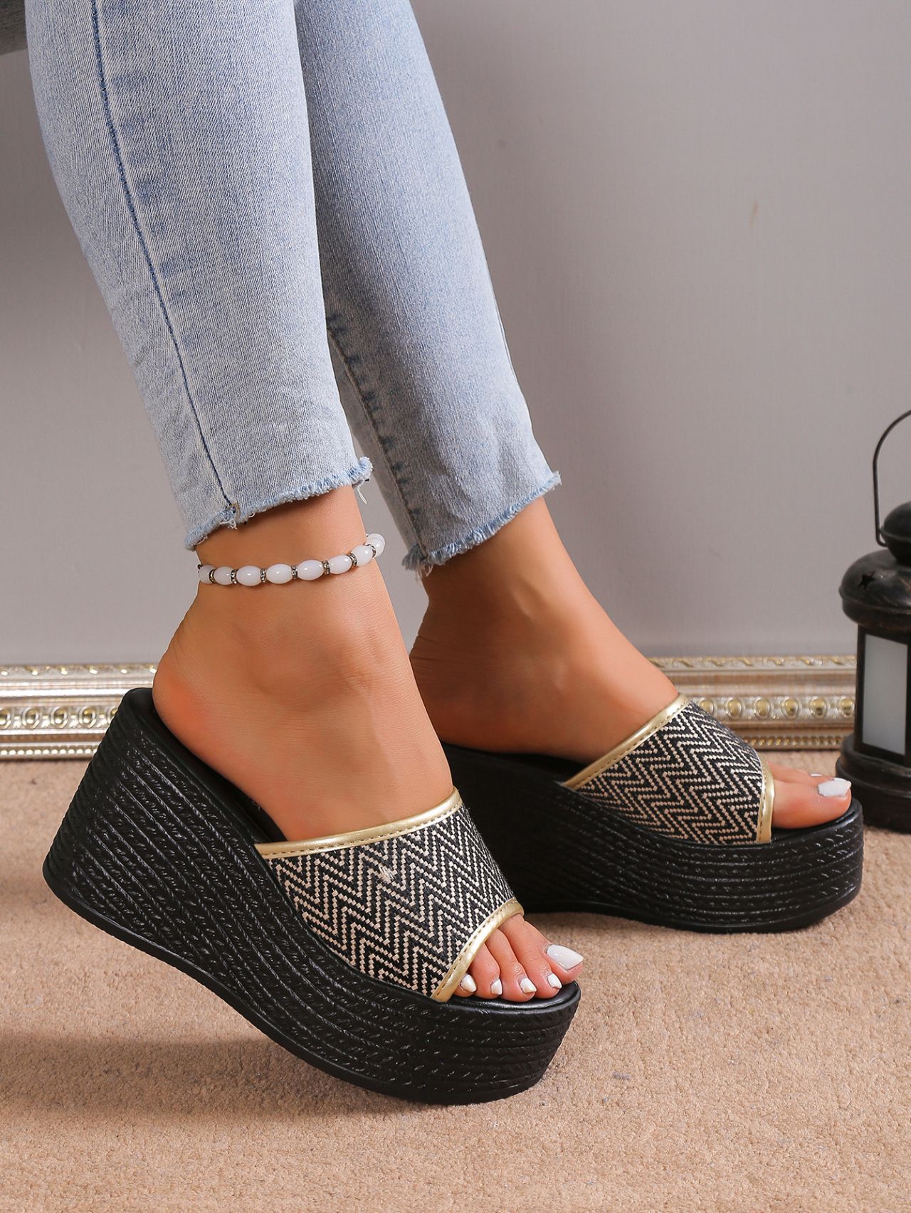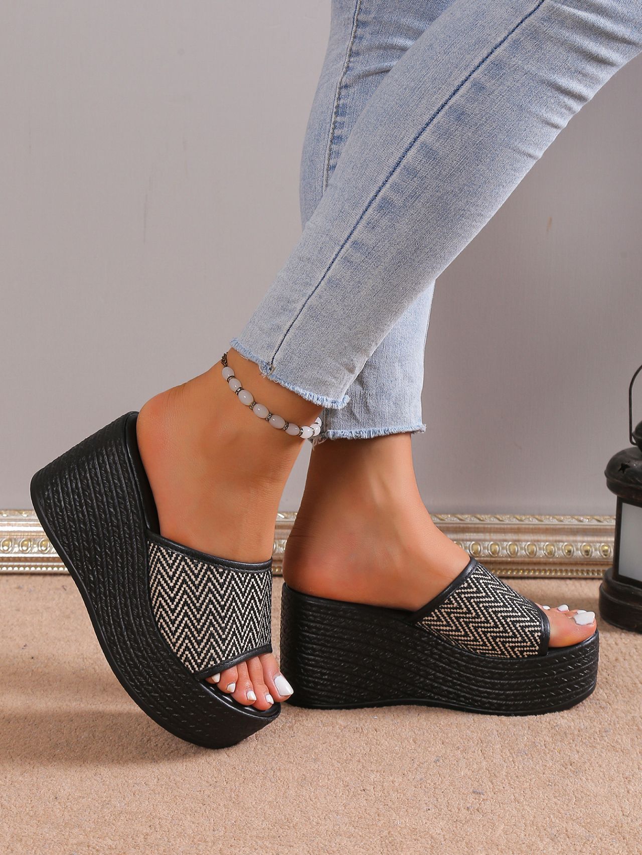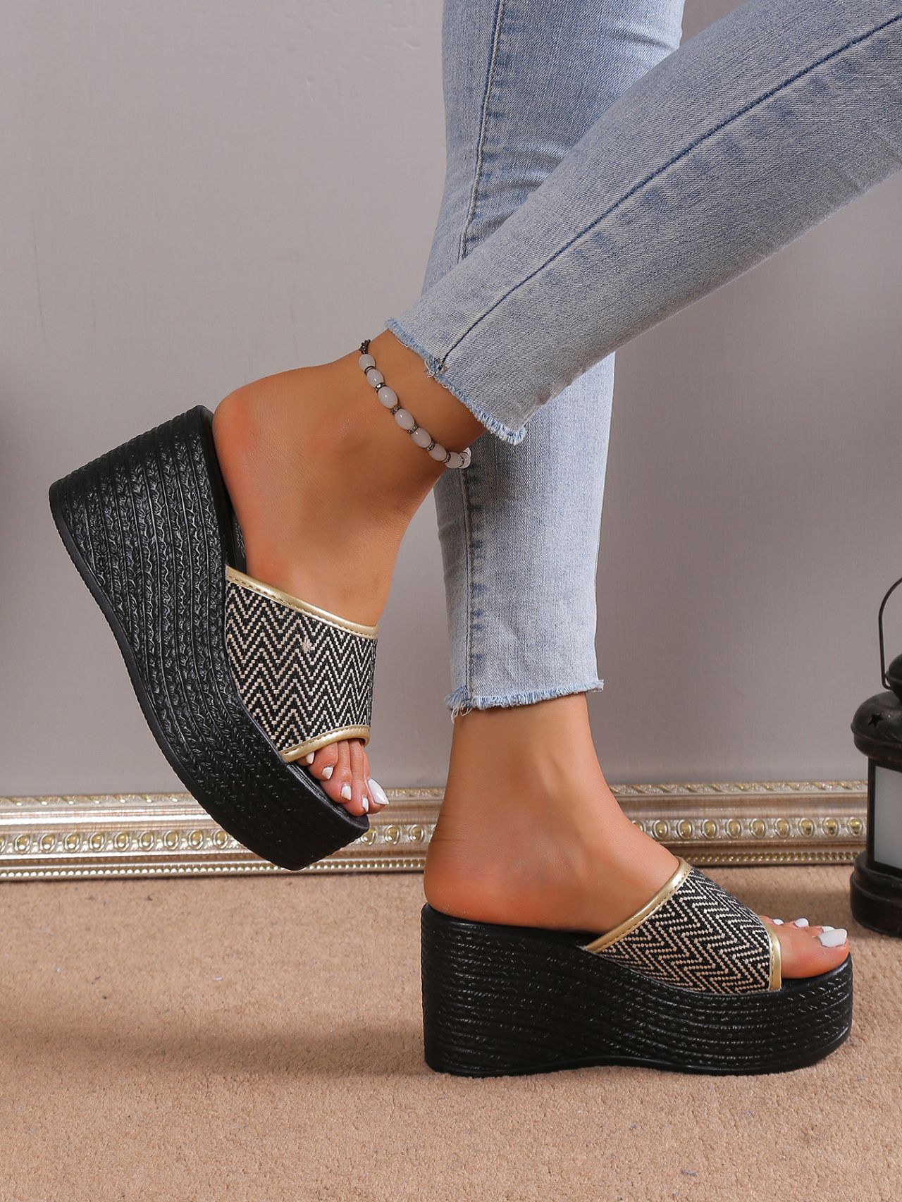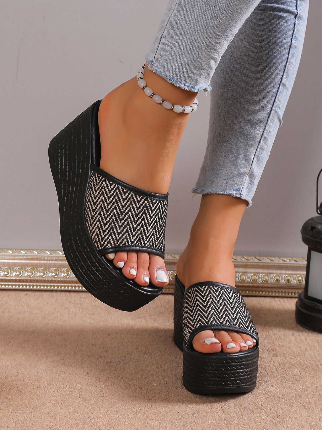 2023 여름 새로운 슬리퍼 여성용 스트라이프 타입 두꺼운 하단 웨지 캐주얼 플러스 사이즈 여성용 샌들 및 슬리퍼 배치스토어 가기