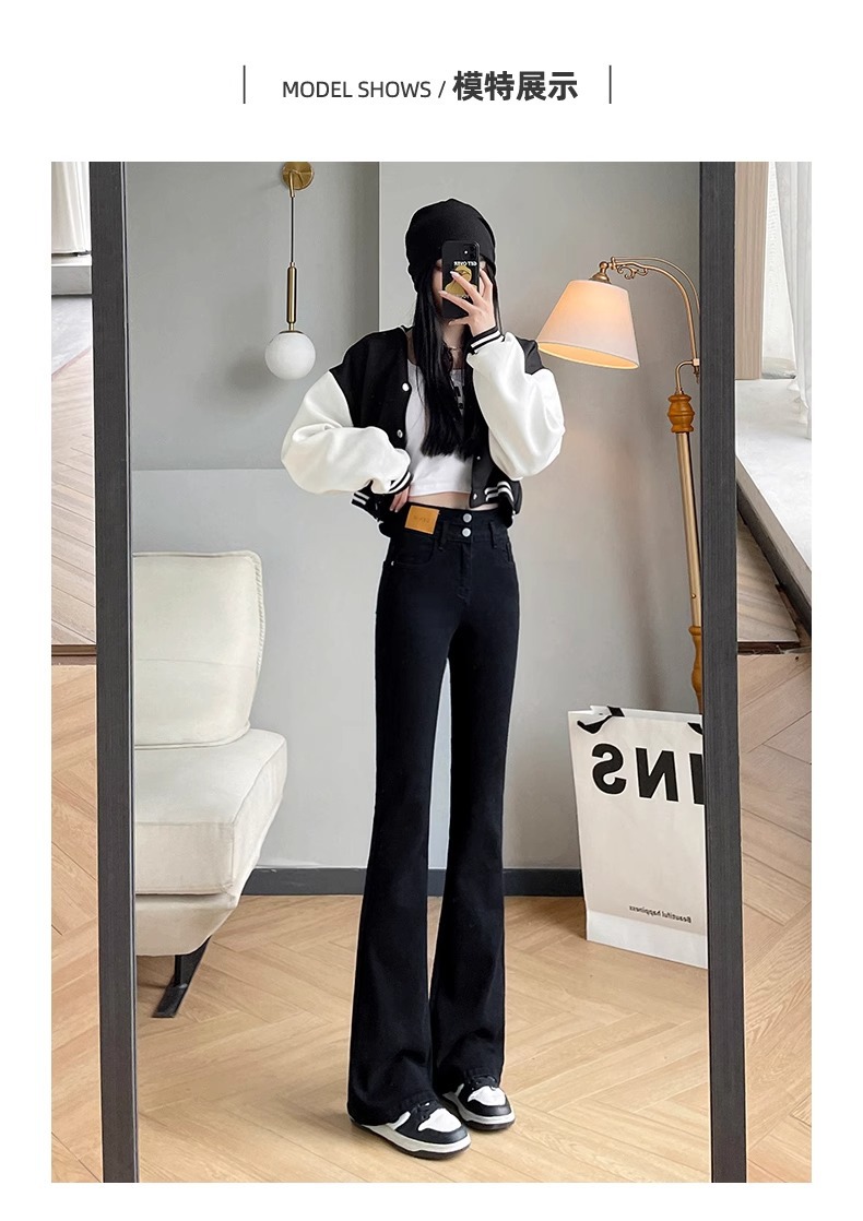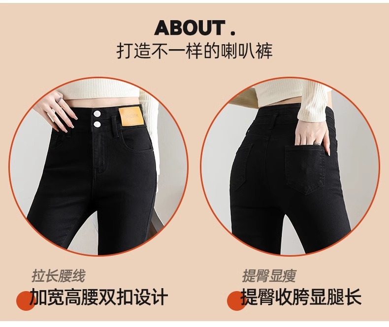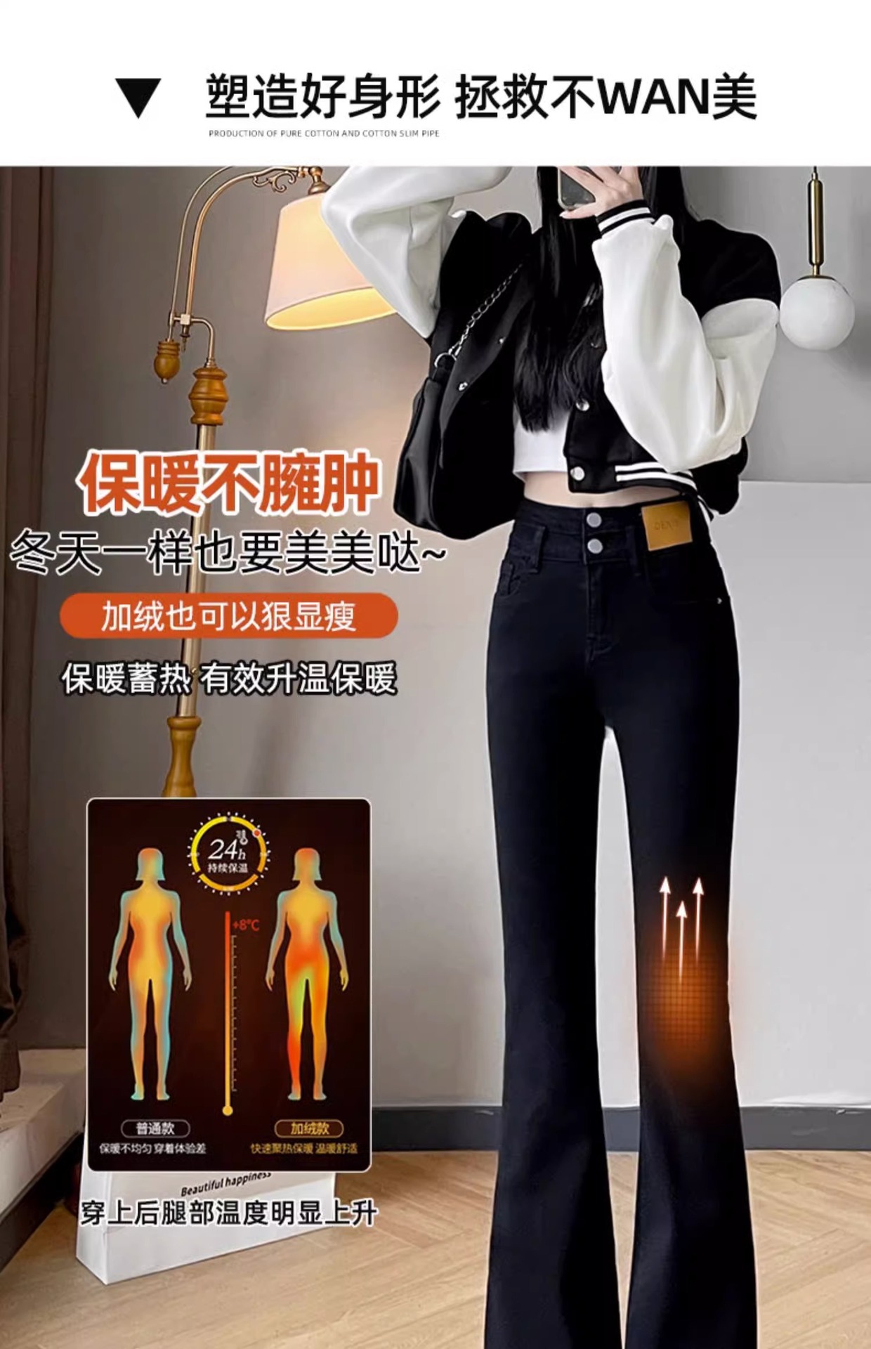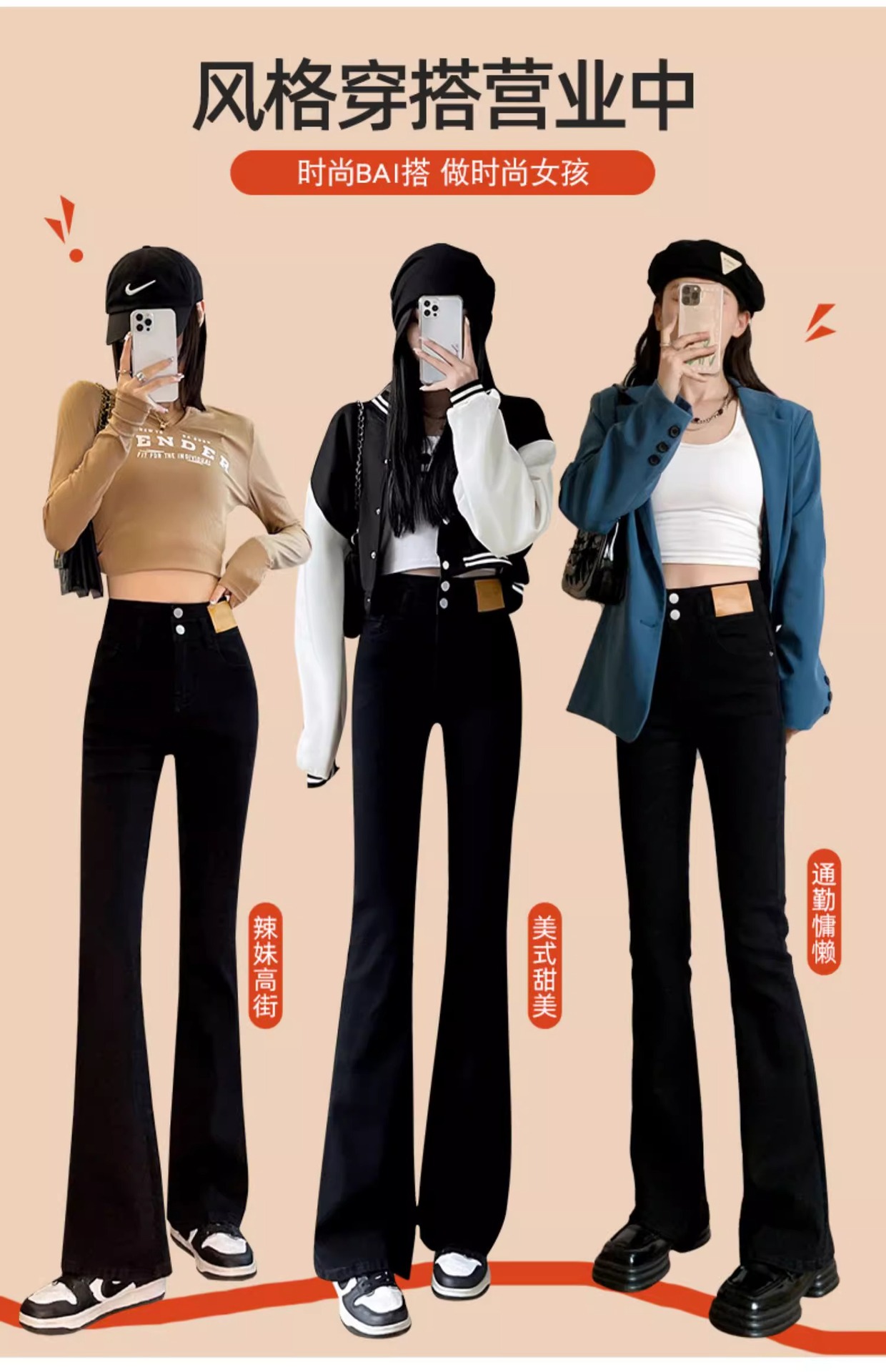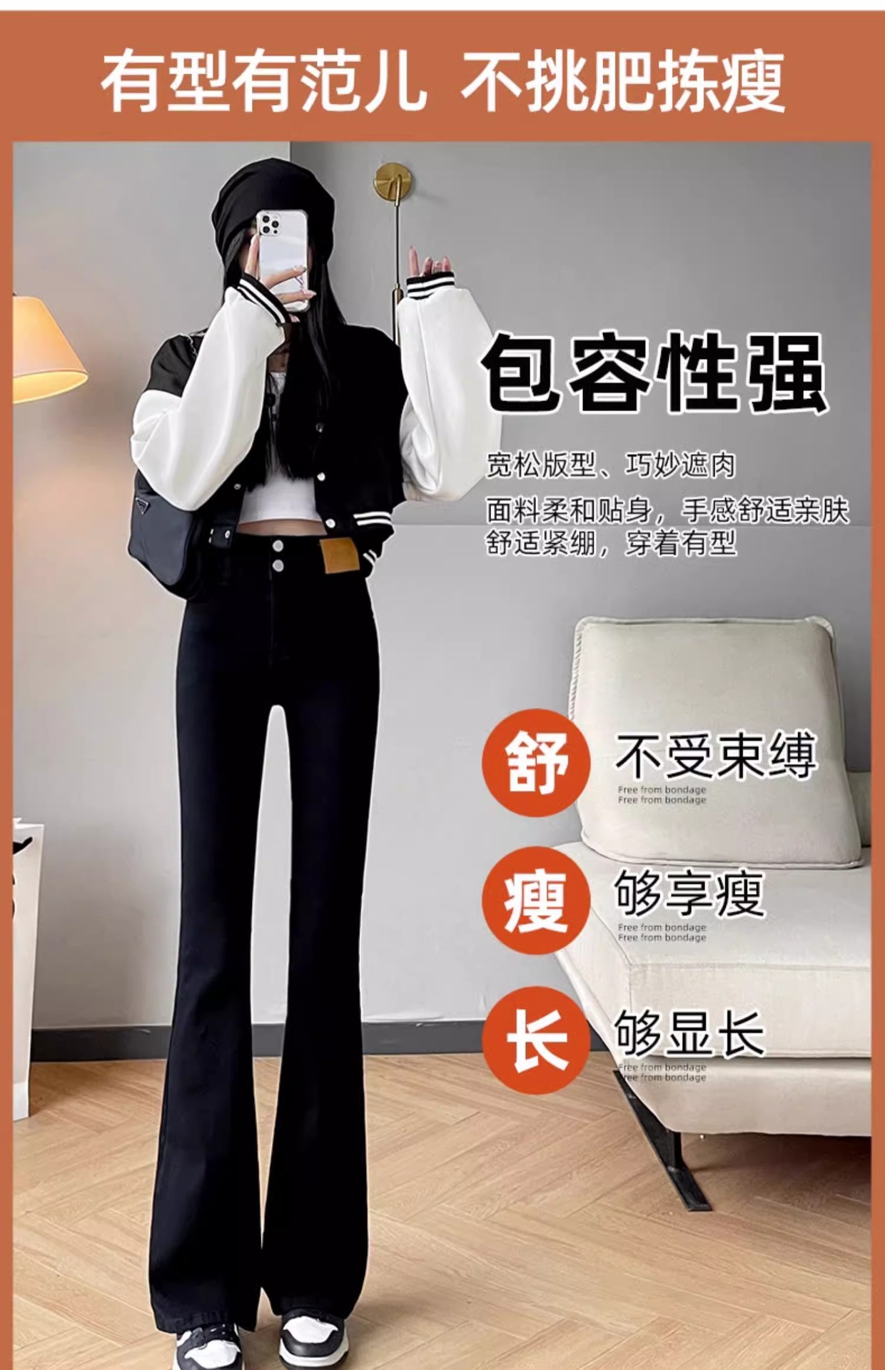 검은 플레어 바지 여성의 봄과 가을 2025 새로운 폭발 높은 허리 작은 기모 마이크로 데님 바지 가을과 겨울스토어 가기