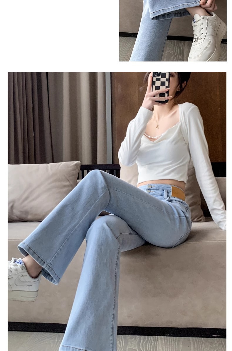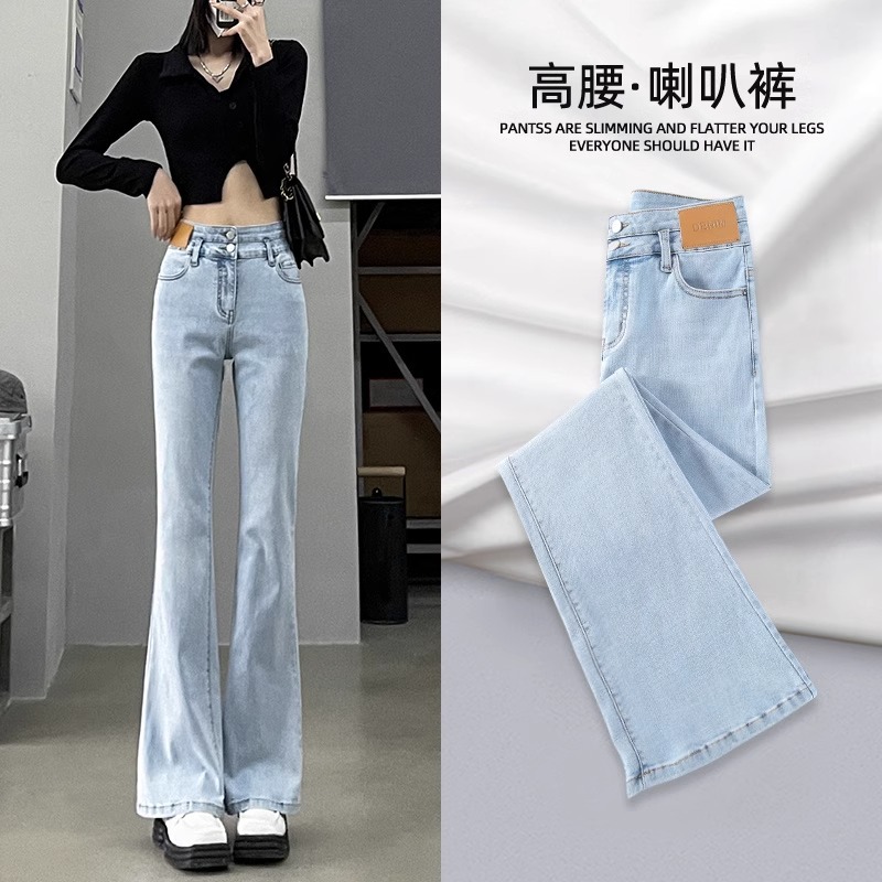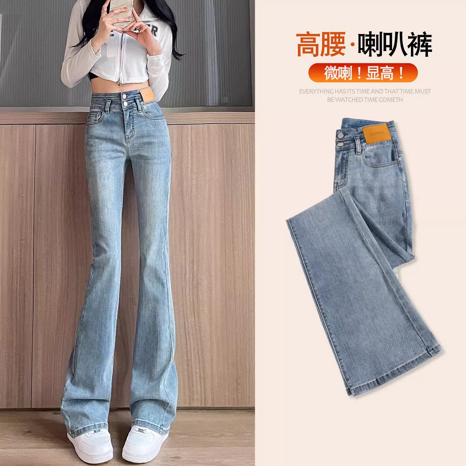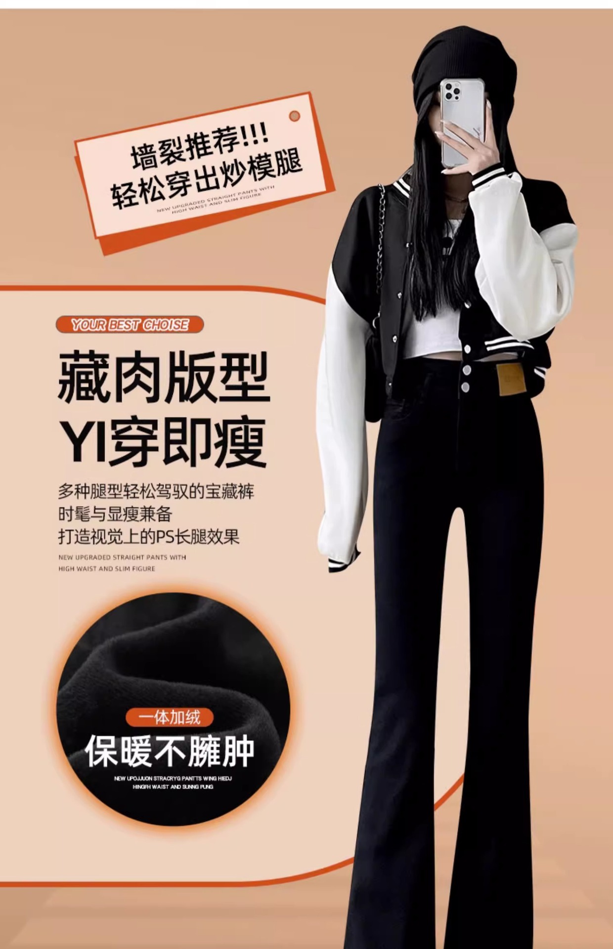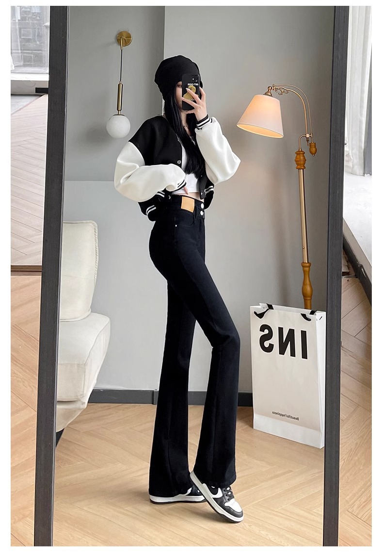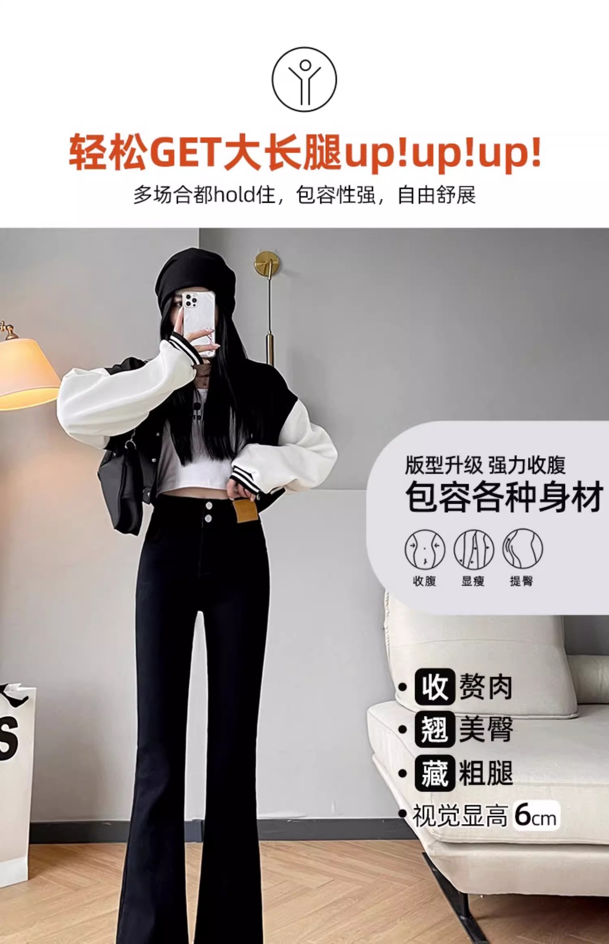 검은 플레어 바지 여성의 봄과 가을 2025 새로운 폭발 높은 허리 작은 기모 마이크로 데님 바지 가을과 겨울스토어 가기