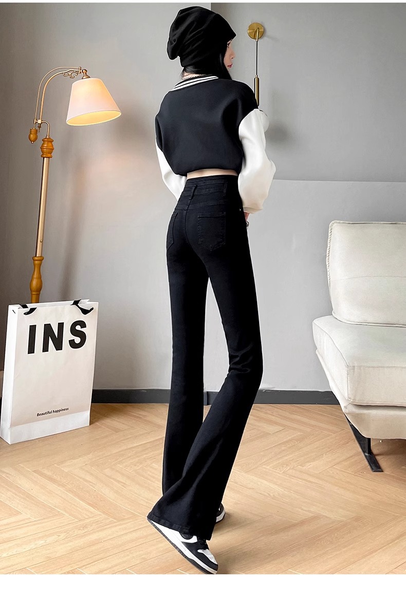 검은 플레어 바지 여성의 봄과 가을 2025 새로운 폭발 높은 허리 작은 기모 마이크로 데님 바지 가을과 겨울